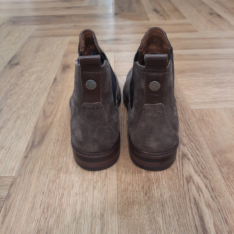 Description – Bottines Chelsea confectionnées en daim de vache – Bandes élastiques latérales sur la tige – Tirette arrière en cuir avec clou décoratif – Semelle épaisse avec motif antidérapant – Talon bloc en caoutchouc – Fabriquées selon des pratiques durables Composition 100 % Daim De Bovin Référence: PMS50000189643
