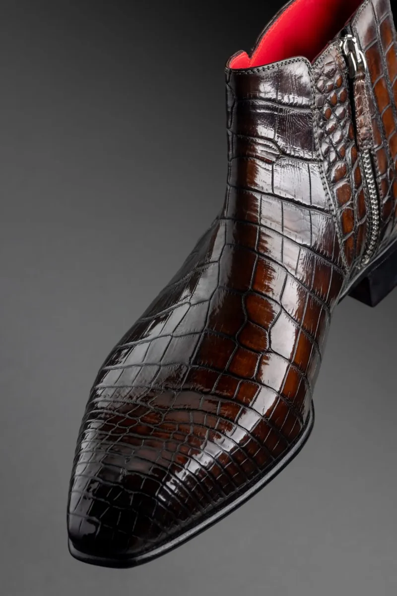 Bottine zippée semi-montante en cuir de crocodile