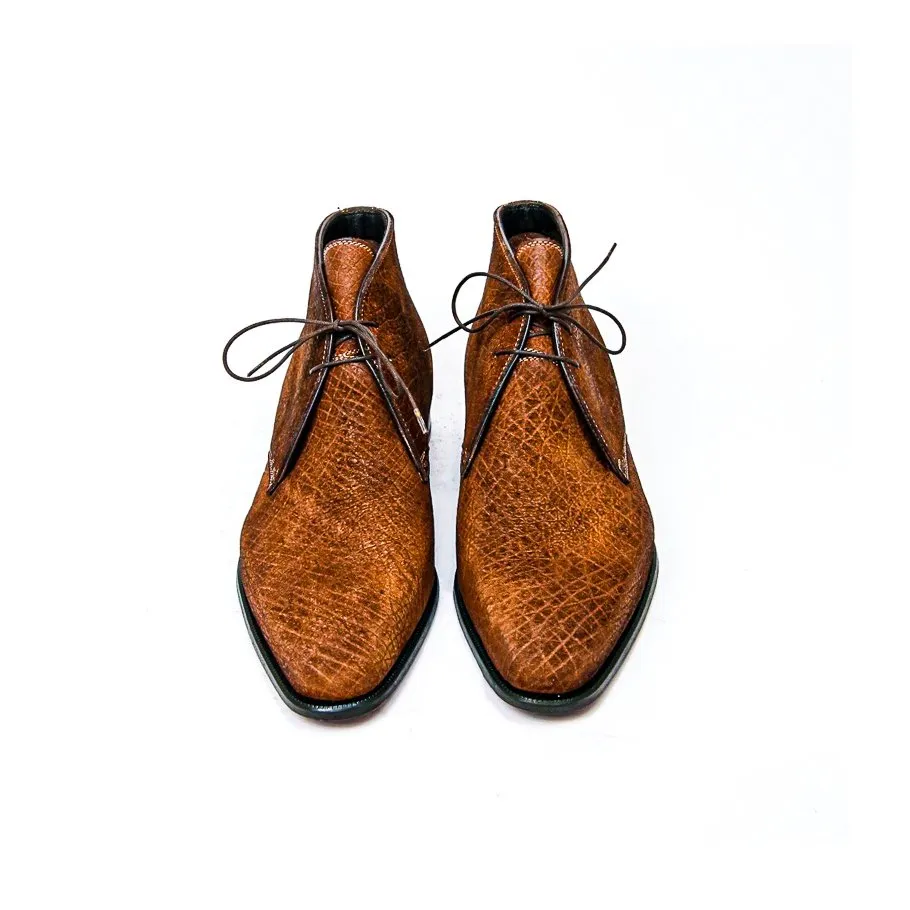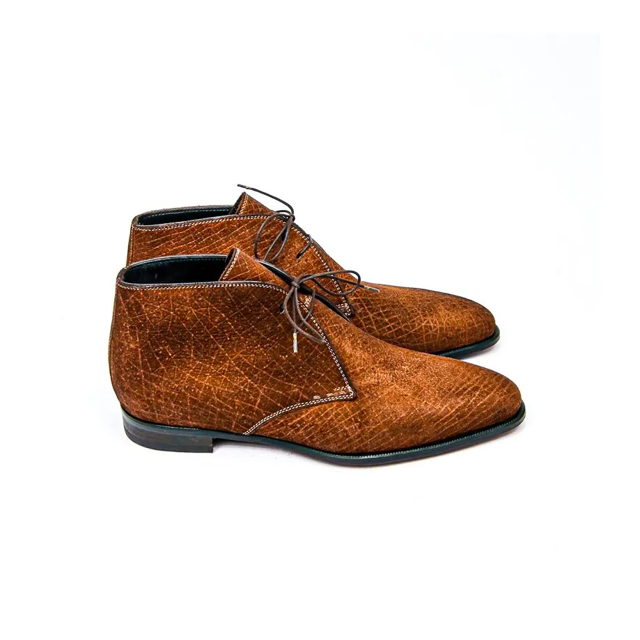 Modèle emblématique du vestiaire masculin, la Chukka Boots est un modèle aussi chic que casual. Dans une version précieuse et sauvage en cuir d’Hippopotame couleur Whisky. Cette Chukka s’associera aussi bien avec vos costumes (privilégiez plutôt l’ourlet en revers) que vos tenues plus détentes. CECI EST UNE COMMANDE SPÉCIALE, COMPTER 3 MOIS DE RÉALISATION (COULEUR A LA CARTE) Avant de faire votre choix n’hésitez pas à consulter notre « guide des tailles » et notre « guide des pointures » Guide des pointures Guide des couleurs