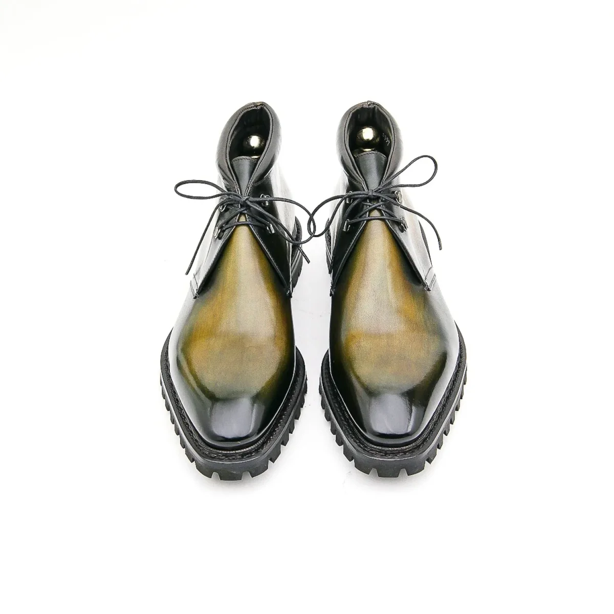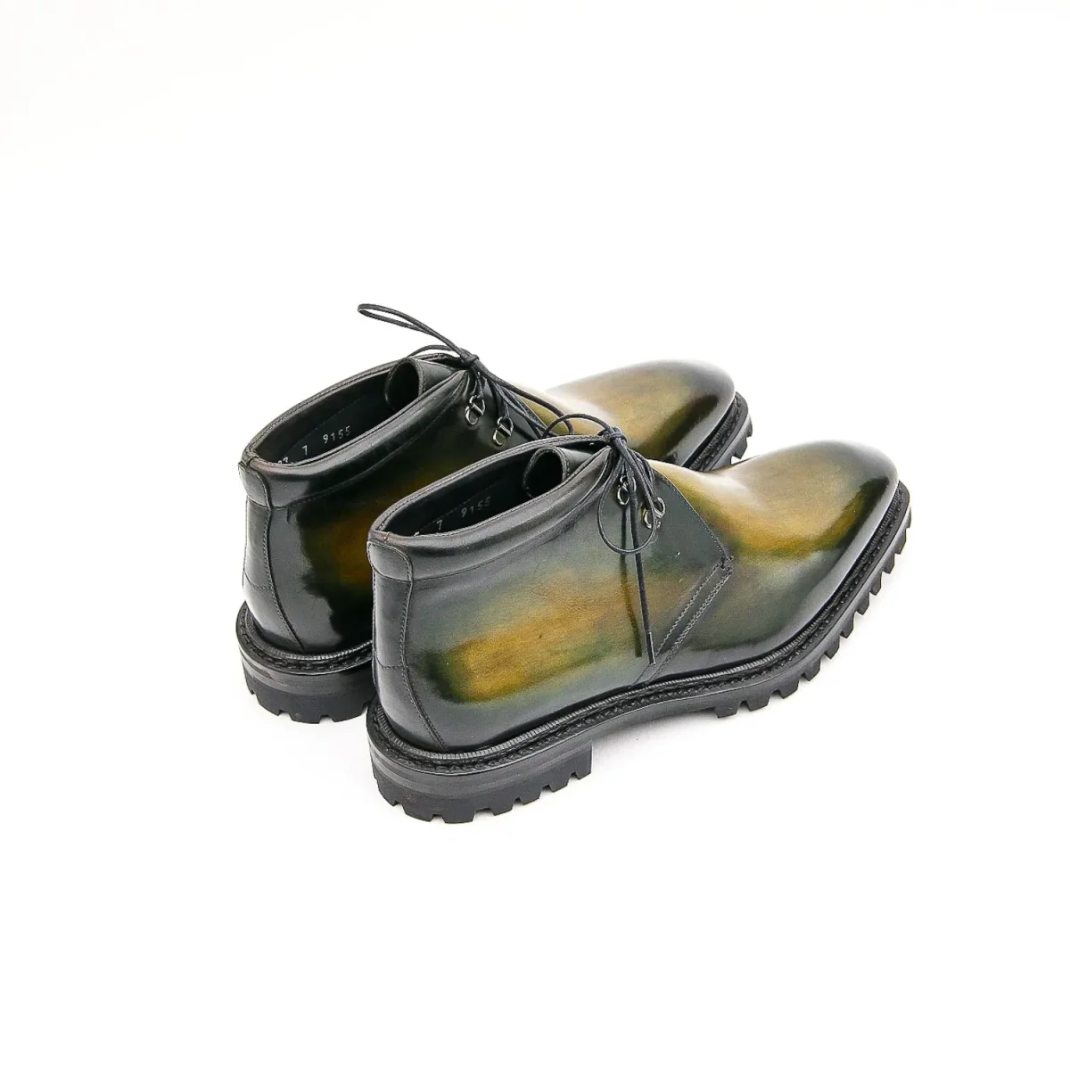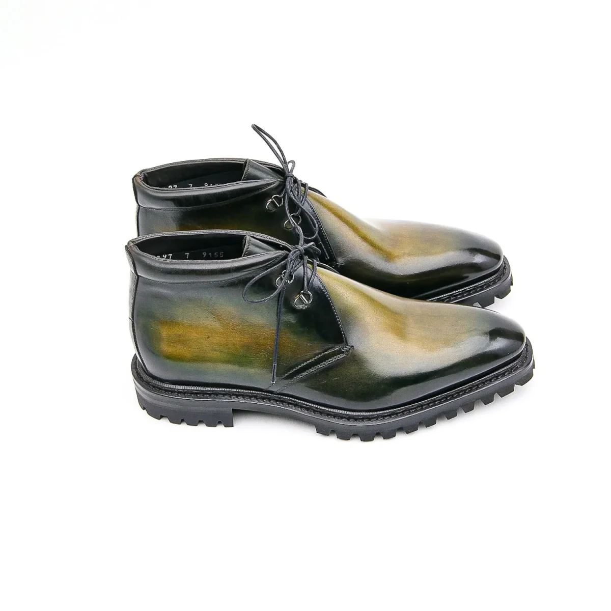 Modèle emblématique du vestiaire masculin, la Chukka Boots est un modèle aussi chic que casual. Présentée ici dans une version hivernale, montée sur semelle St Moritz en gomme ultra résistante. Patine Feuille d’Automne à dominante de vert. Avant de faire votre choix n’hésitez pas à consulter notre « guide des tailles » et notre « guide des pointures » Guide des pointures Guide des couleurs