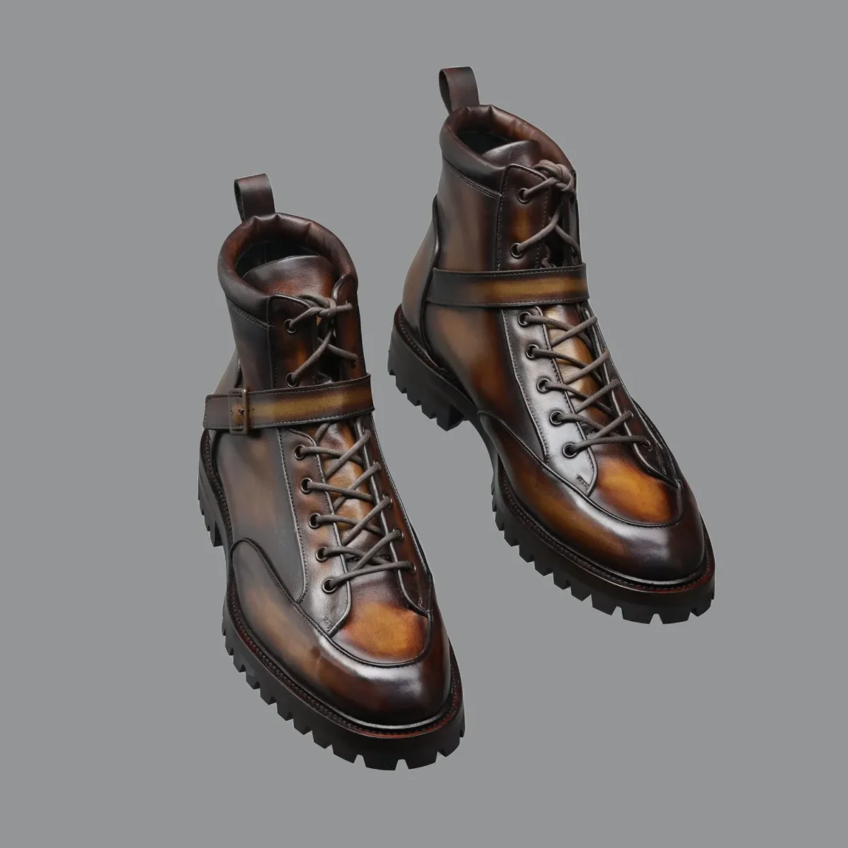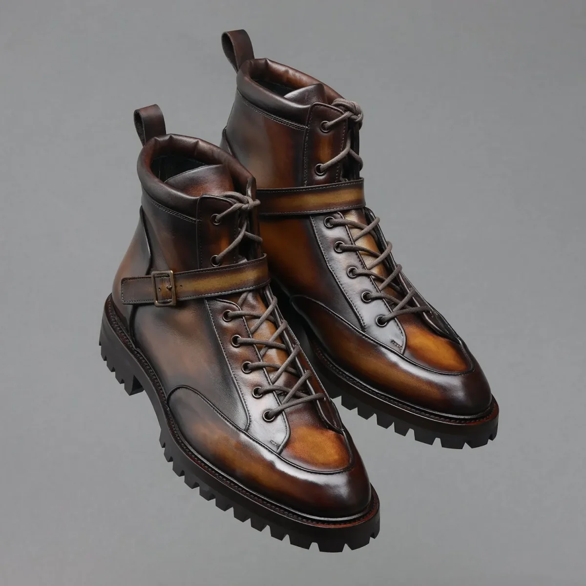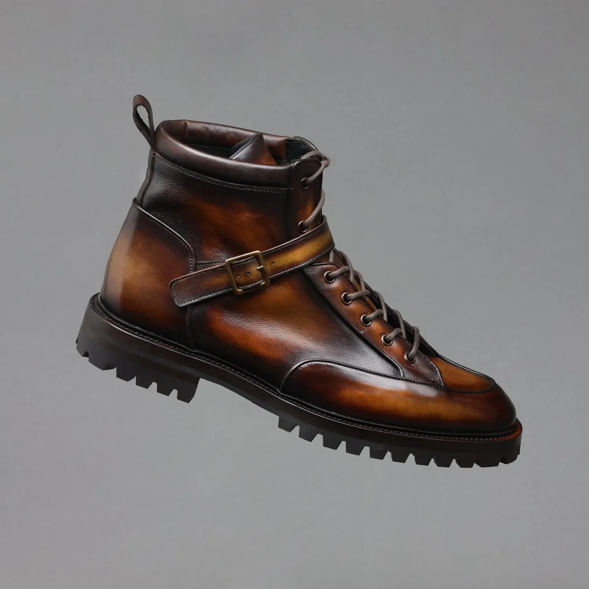 La bottine Kubilaï est un modèle de bottines hiver sport et sophistiqué. Elle est proposée ici dans sa version « full crust » de tannage végétale à patiner, toujours montée sur une semelle gomme St Moritz pour un confort alliant robustesse et souplesse. C’est un modèle au chaussant généreux, nous vous conseillons de descendre d’une demi pointure « Altan ». Présentée ici dans une patine Marron Tabac. Avant de faire votre choix n’hésitez pas à consulter notre « guide des tailles » et notre « guide des patines »