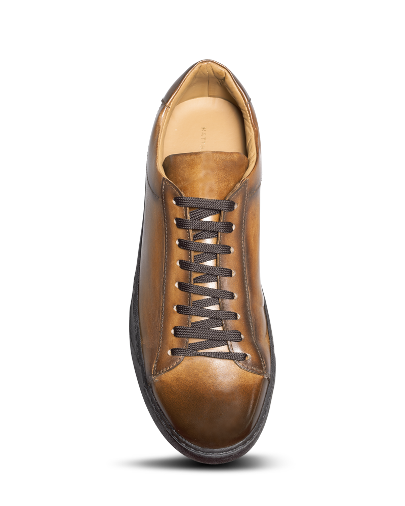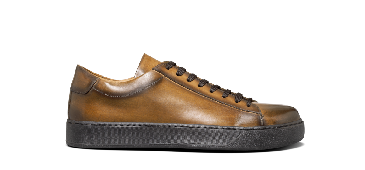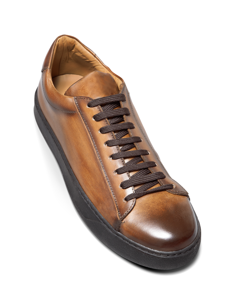 Le modèle Brendon en veau marron moyen est assurément parfait pour parcourir la ville avec aisance et élégance. Semelle en gomme Vibram.