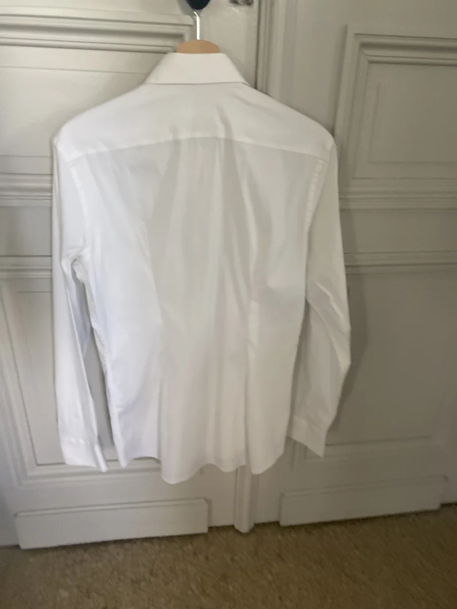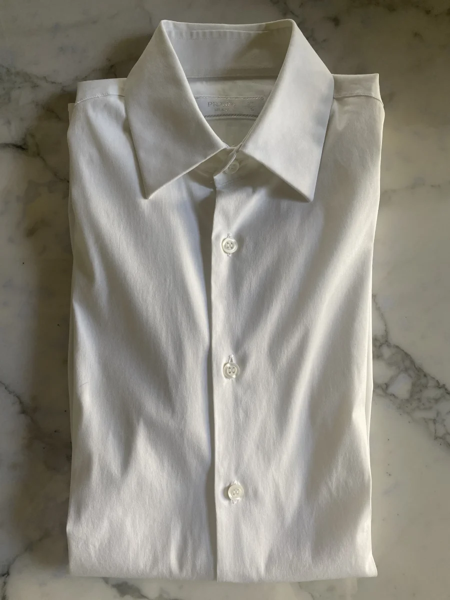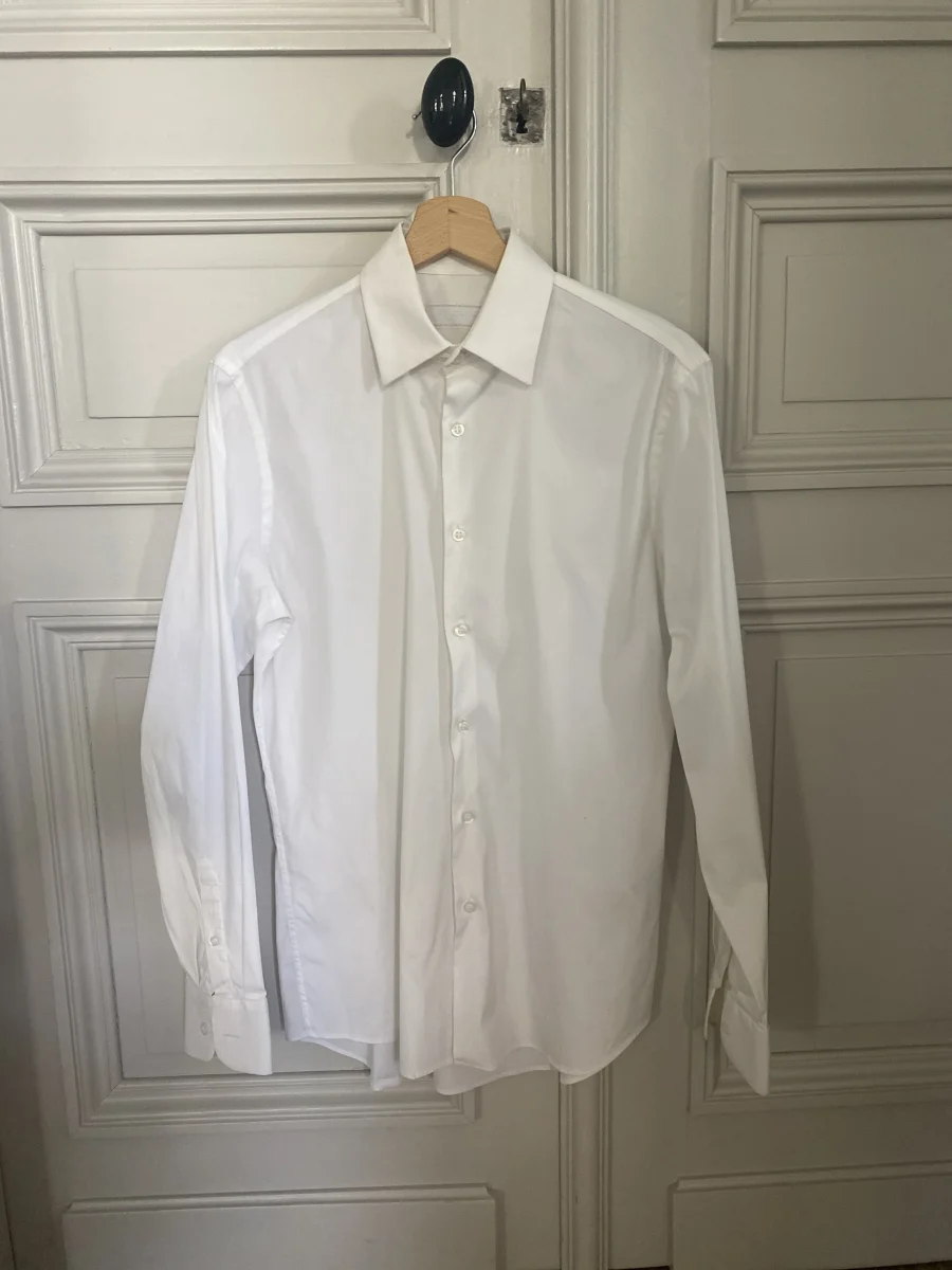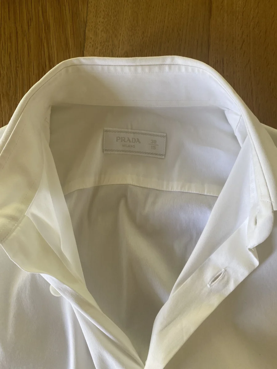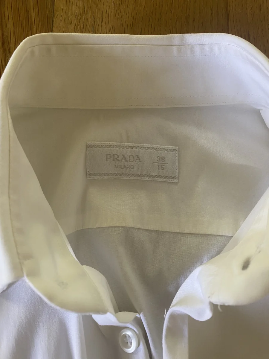 Bon état général (intèrieur du col jaunît cf.photos) Marque : Prada Taille 38 75% Coton 20% Polyamide 5% Elasthane Prix d’achat estimé neuf 550€