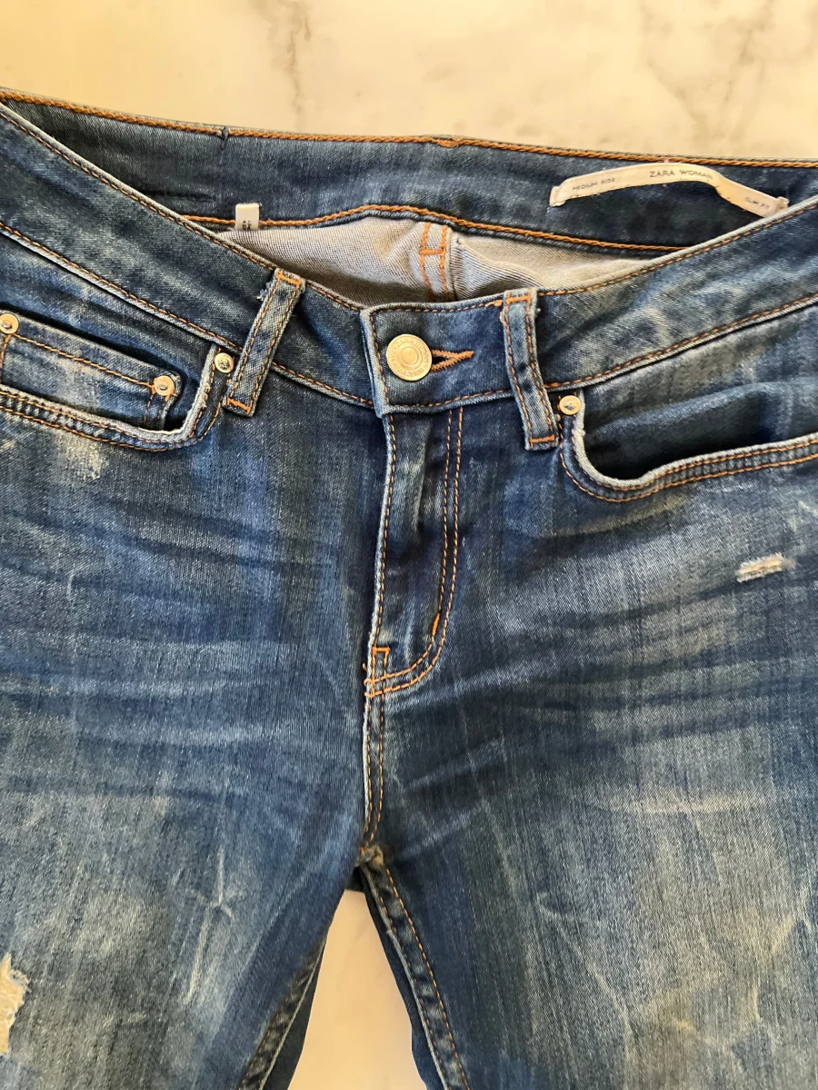 Charlotte Pirroni Jean slim fit Zara troué bleu brut