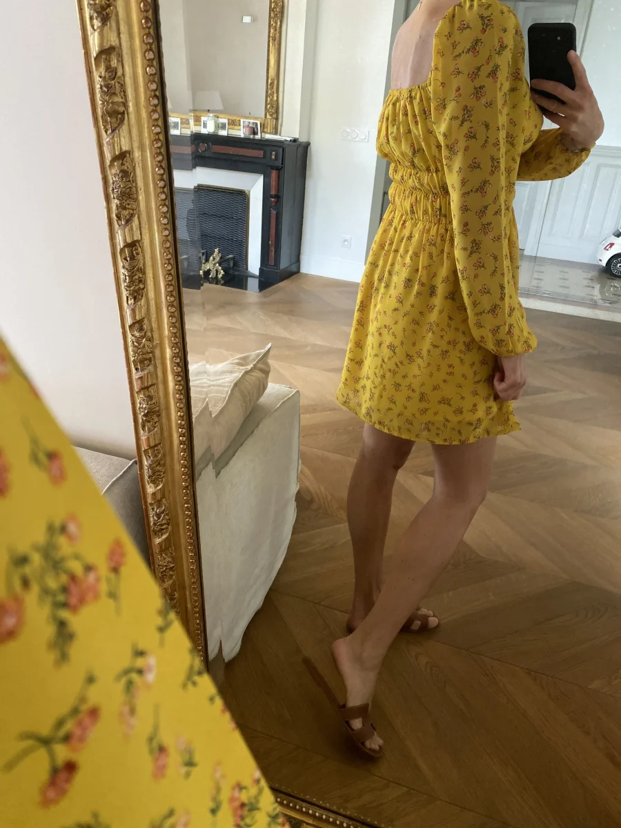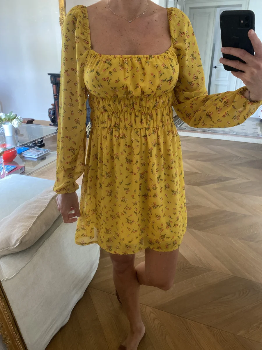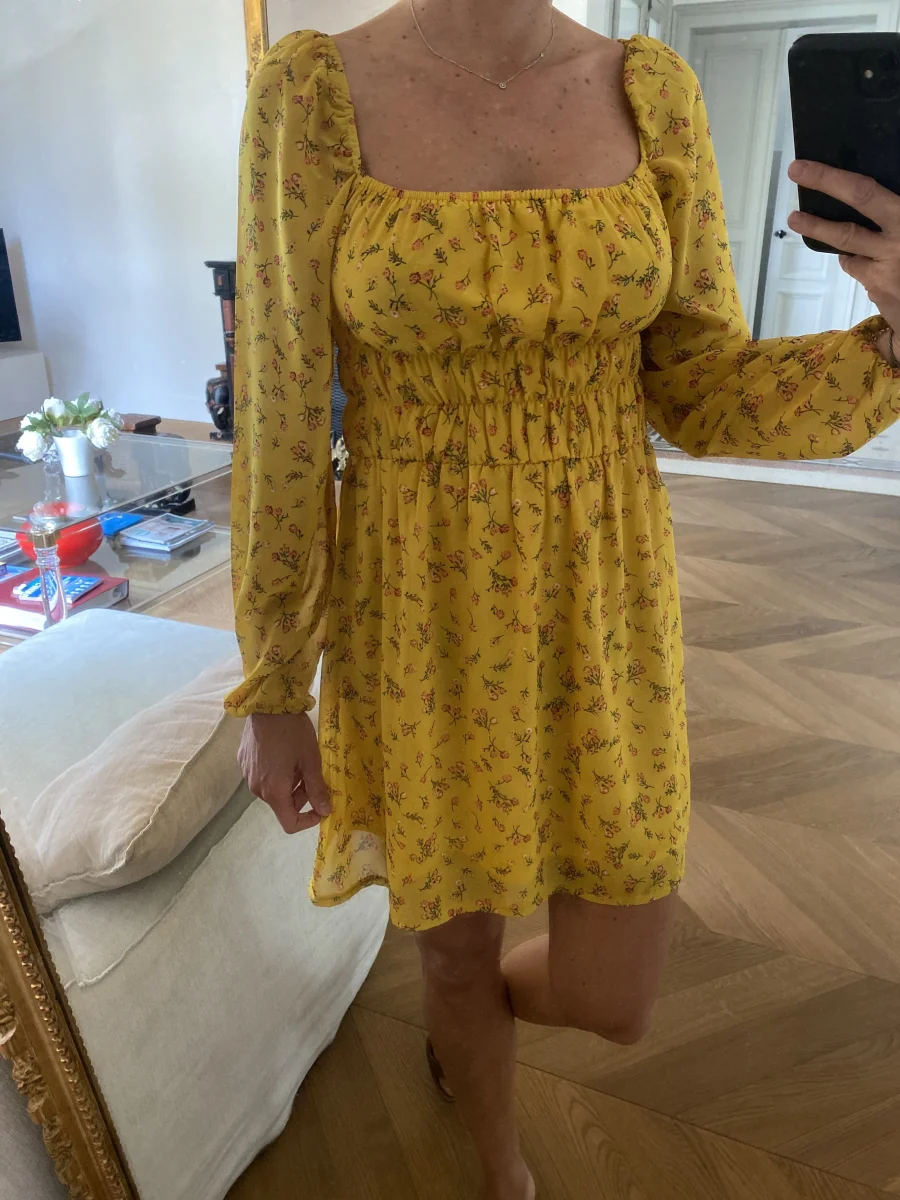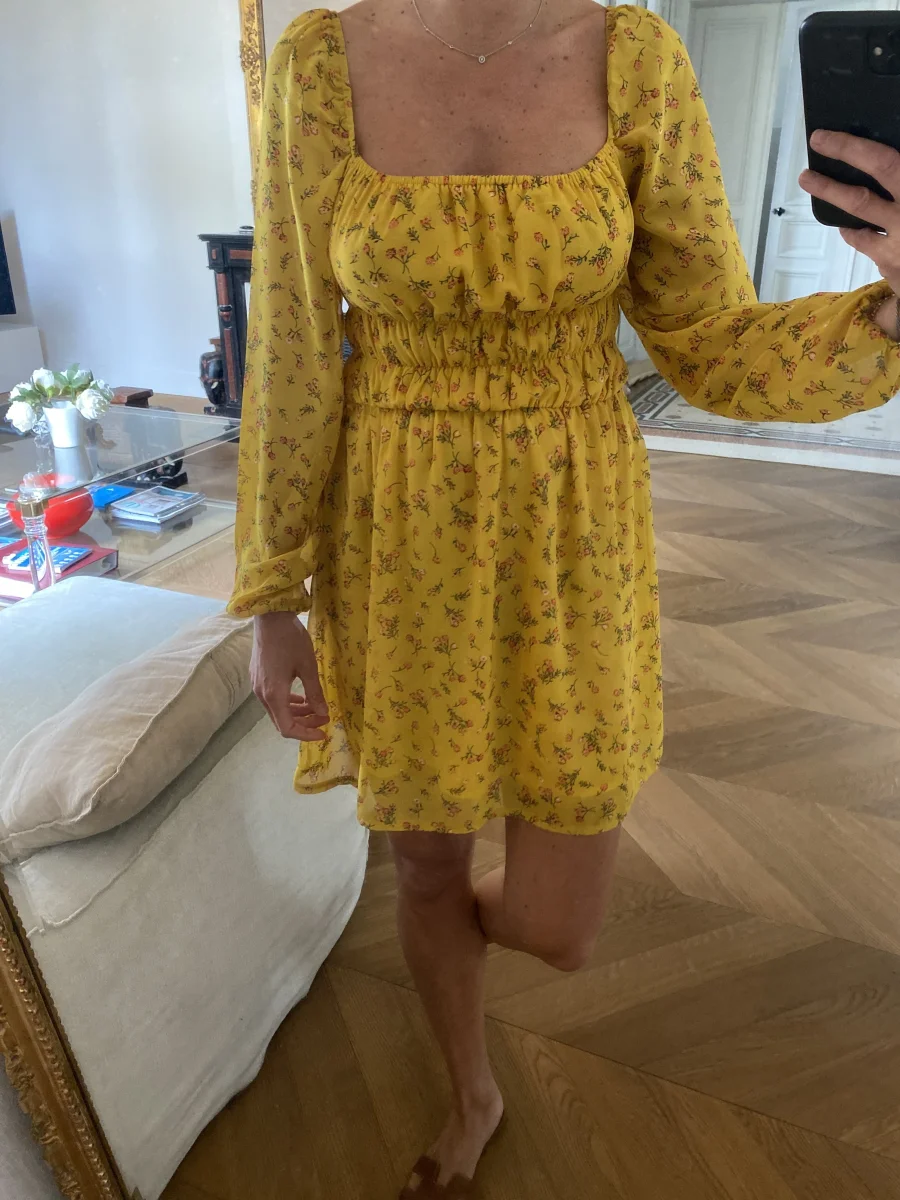 Charlotte Pirroni Robe Nastygal moutarde à fleurs