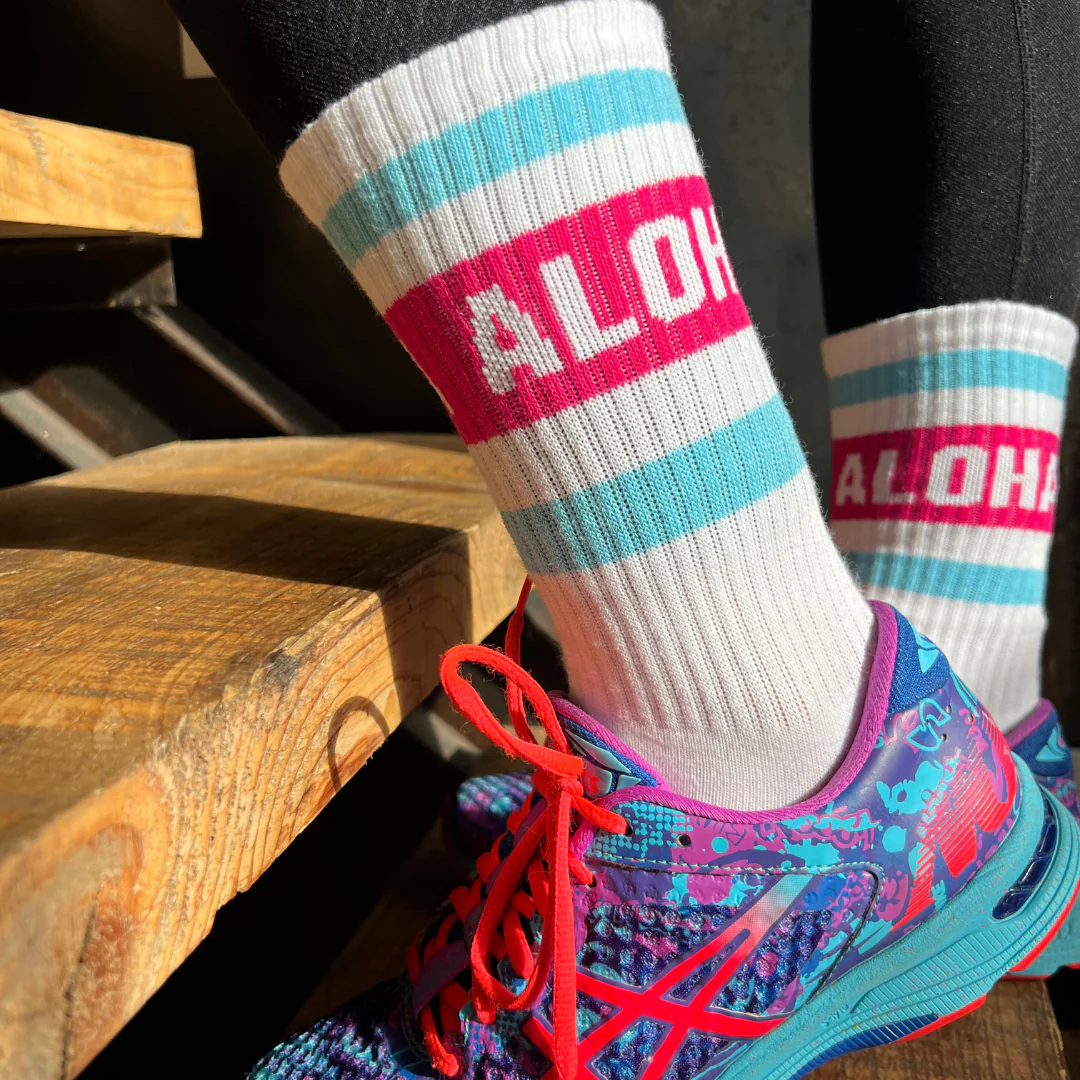 Adoptez les Chaussettes Sport Surf Rose/Bleu 🌴 : un mélange parfait de style tendance et de technologie sportive.