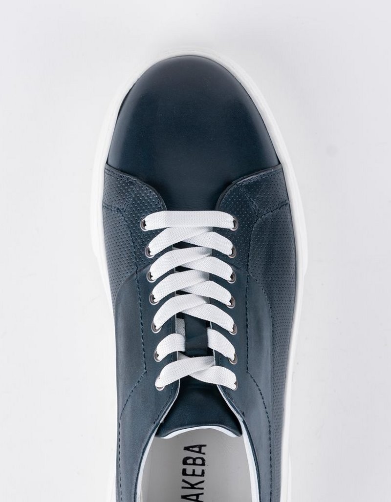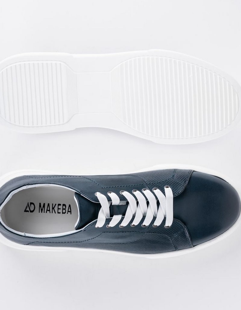 Baskets légères en cuir bleu, semelles intérieures orthopédique et semelles extérieure EVA.