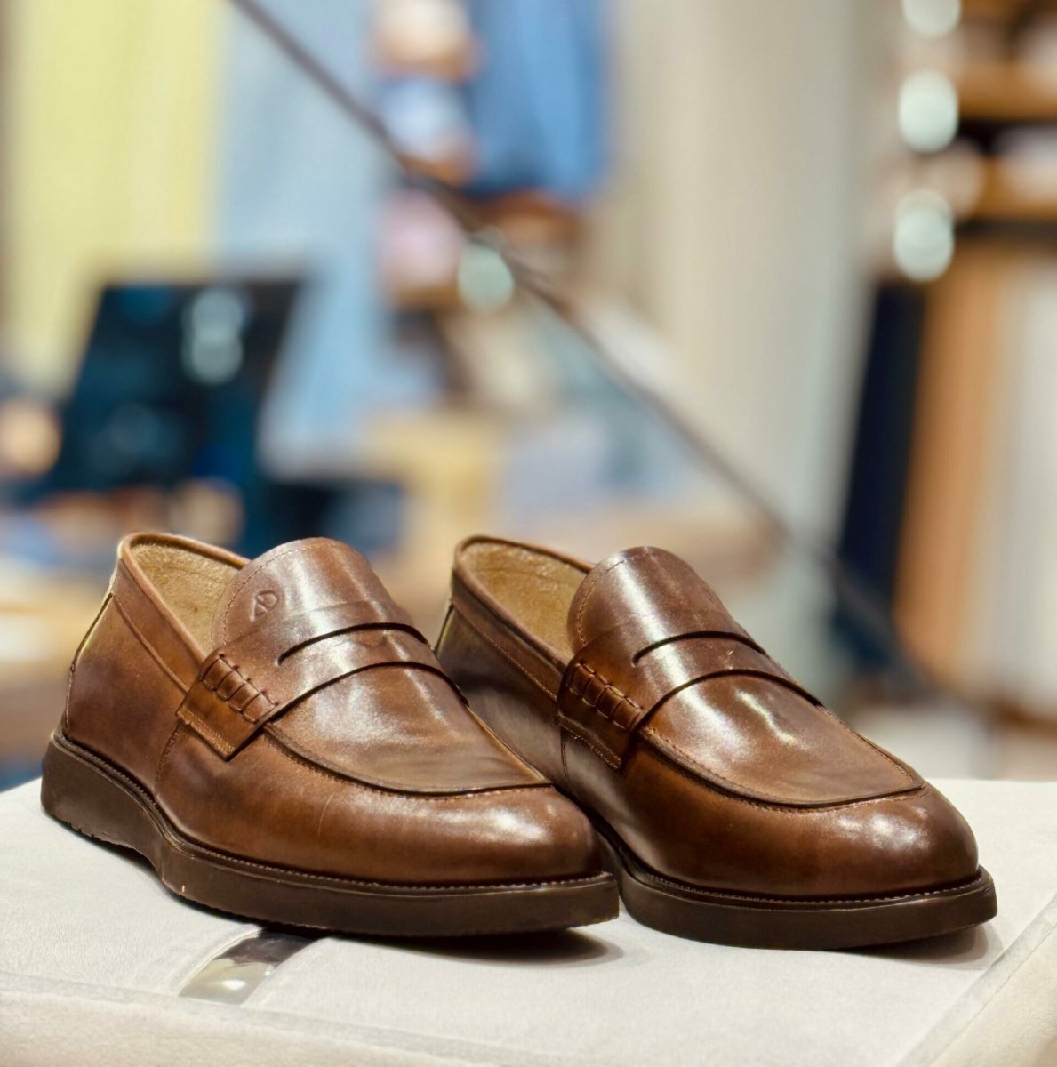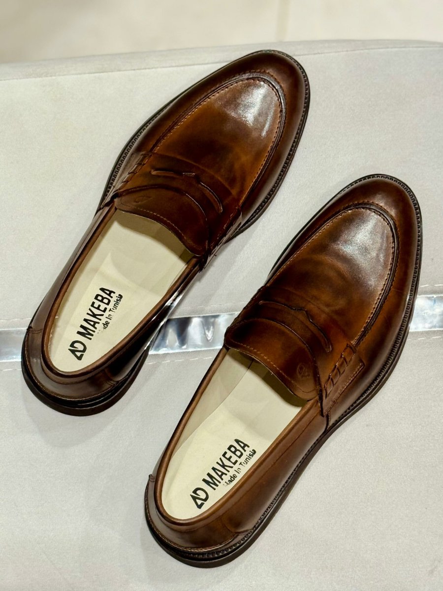 Chaussure en cuir marron et semelle light .