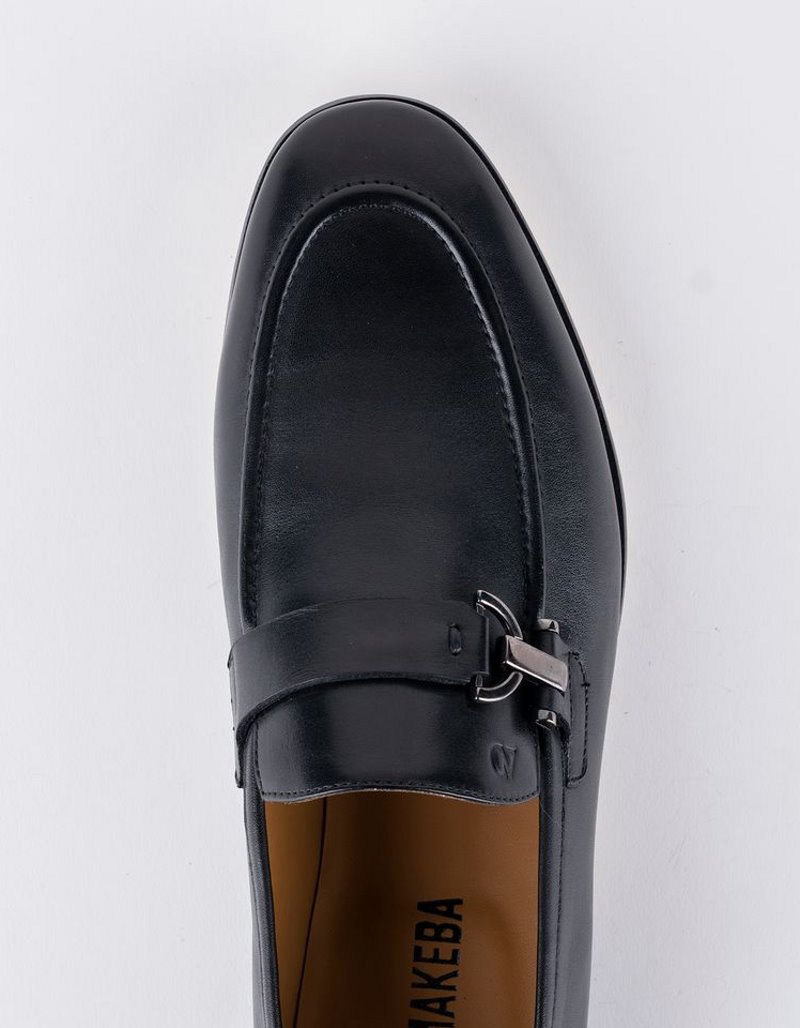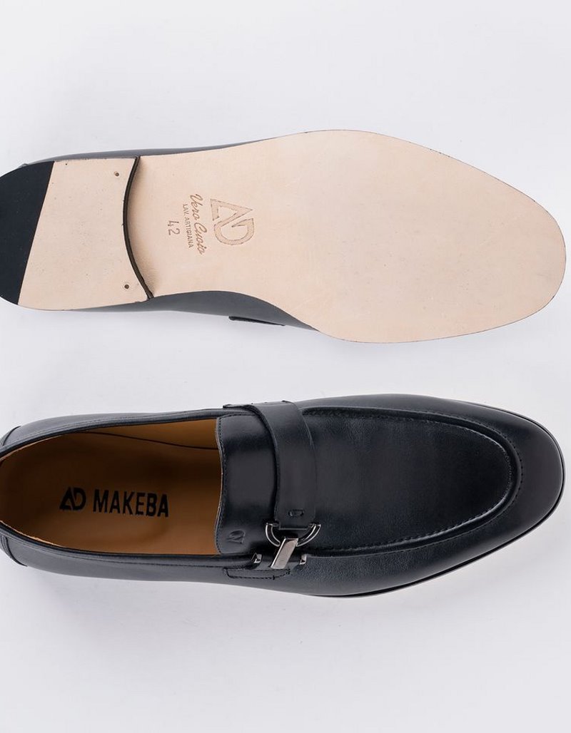 Chaussures en cuir noir, semelles cuir italien et boucle en acier.