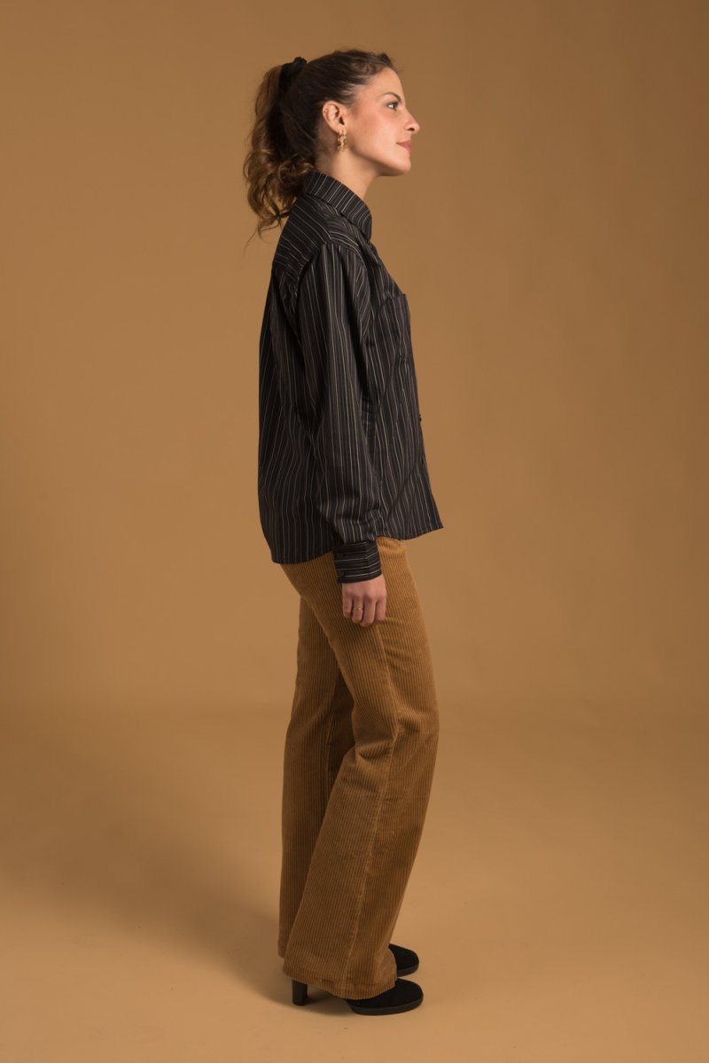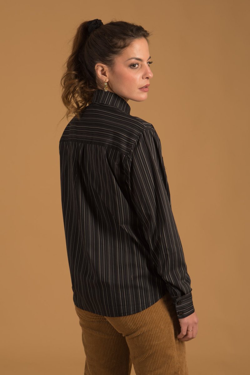 Cette jolie chemise à rayures pour femme, à la fois élégante et moderne, est confectionnée avec amour dans notre atelier à Montpellier, grâce à un savoir-faire artisanal et à une qualité Made in France.