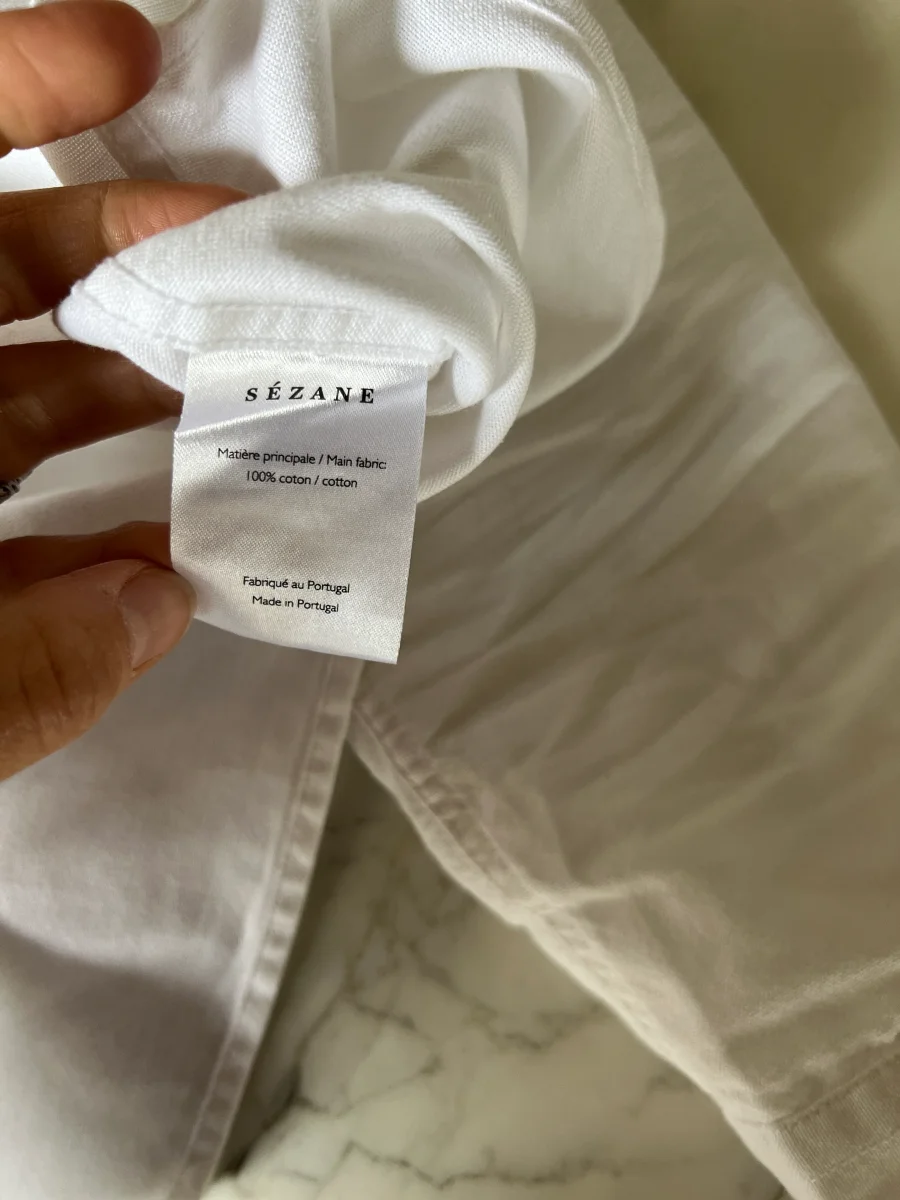 Très bon état Marque : Sezane Taille 36 100% coton Pour la longueur je mesure 1m71 Prix d’achat estimé neuf 185€
