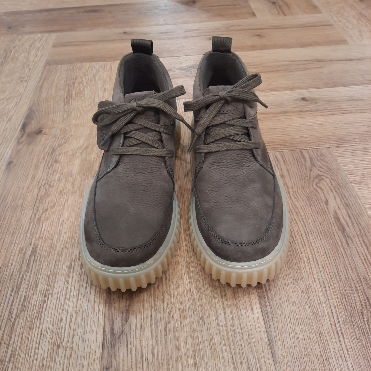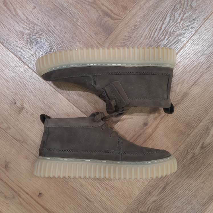Tige en nubuck premium kaki Lacets réglables pour un ajustement sûr Semelle intérieure Contour Cushion en cuir moulée et amovible soutient chaque pas Semelle extérieure durable en TR (caoutchouc thermoplastique) nervuré avec remplissage en EVA pour une traction légère Livré avec deux pampilles en relief (logo Clarks et Glastonbury Tor) en hommage au patrimoine de Clarks