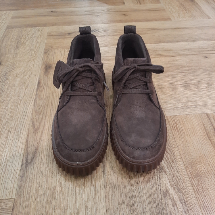 Tige en nubuck premium brun foncé Lacets réglables pour un ajustement sûr Semelle intérieure Contour Cushion en cuir moulée et amovible soutient chaque pas Semelle extérieure durable en TR (caoutchouc thermoplastique) nervuré avec remplissage en EVA pour une traction légère Livré avec deux pampilles en relief (logo Clarks et Glastonbury Tor) en hommage au patrimoine de Clarks
