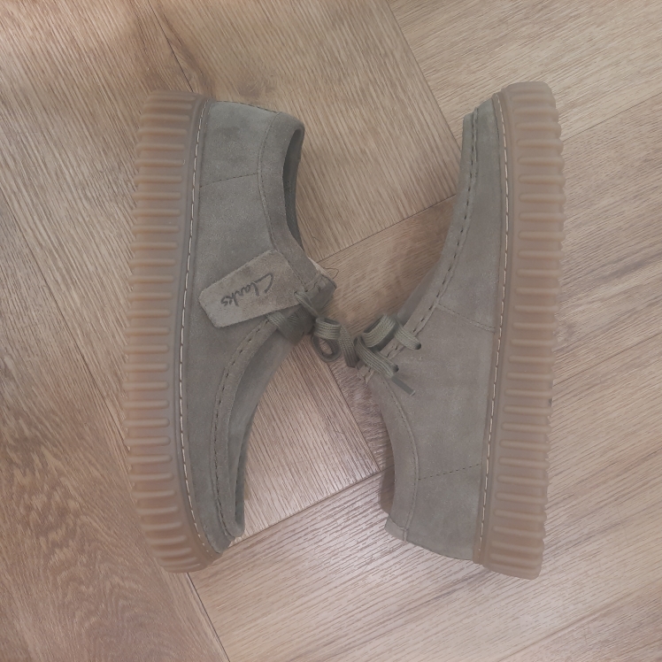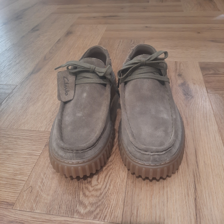 Empeigne en daim olive de qualité supérieure Les lacets réglables offrent un ajustement sûr La semelle intérieure Contour Cushion en cuir moulée et amovible soutient chaque pas Semelle extérieure durable en TR (caoutchouc thermoplastique) nervuré avec remplissage en EVA pour une traction légère Livré avec deux breloques en relief (logo Clarks et logo Torhill) pour rendre hommage à l’héritage de Clarks