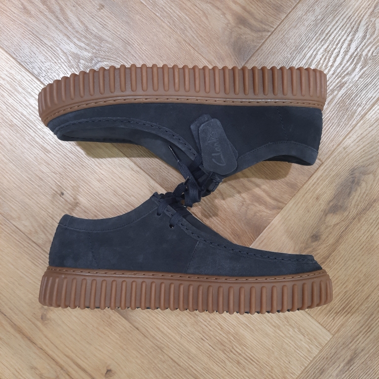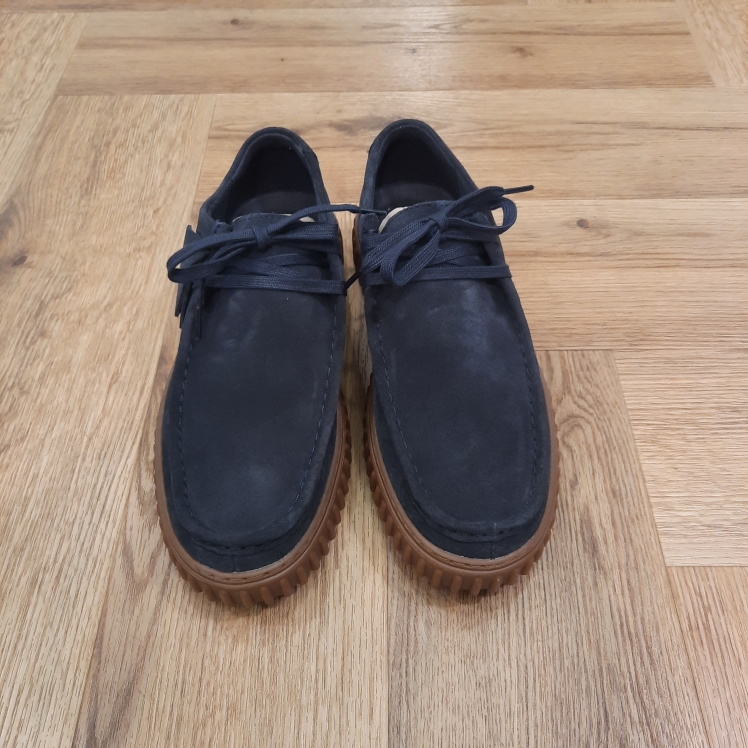 Tige premium en daim bleu marine Lacets réglables pour un ajustement sûr La semelle Contour Cushion en cuir, moulée et amovible accompagnera chacun de vos pas Semelle extérieure en TR (caoutchouc thermoplastique) durable et côtelée avec rembourrage en EVA pour une adhérence légère Dotées de deux portes-logo gravés en creux (logo Clarks et Torhill) pour rendre hommage à l’histoire de Clarks