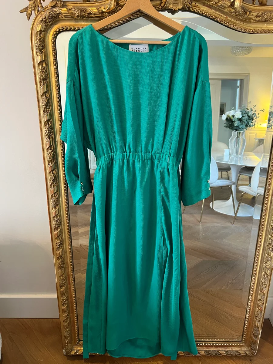 Très bon état Marque : Claudie Pierlot Taille 42 (correspond à une taille 38) Polyester et Elasthane Pour la longueur je mesure 1m71 Prix d’achat Neuf: 285€