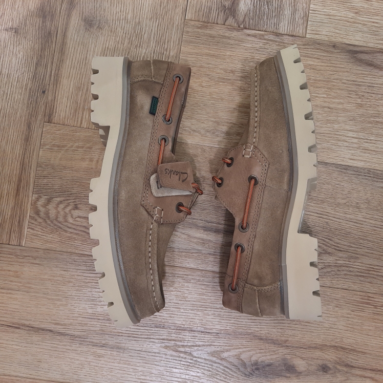 Une nouvelle interprétation des silhouettes de chaussures bateau, Cleyhill Boat Sable est rehaussée par sa semelle audacieuse XTRALITE. Notre chaussure Fastnet des archives des années 70 inspire le profil, tandis que le coussinage doux sous le pied rend cette option décontractée chic confortable pour un usage quotidien.