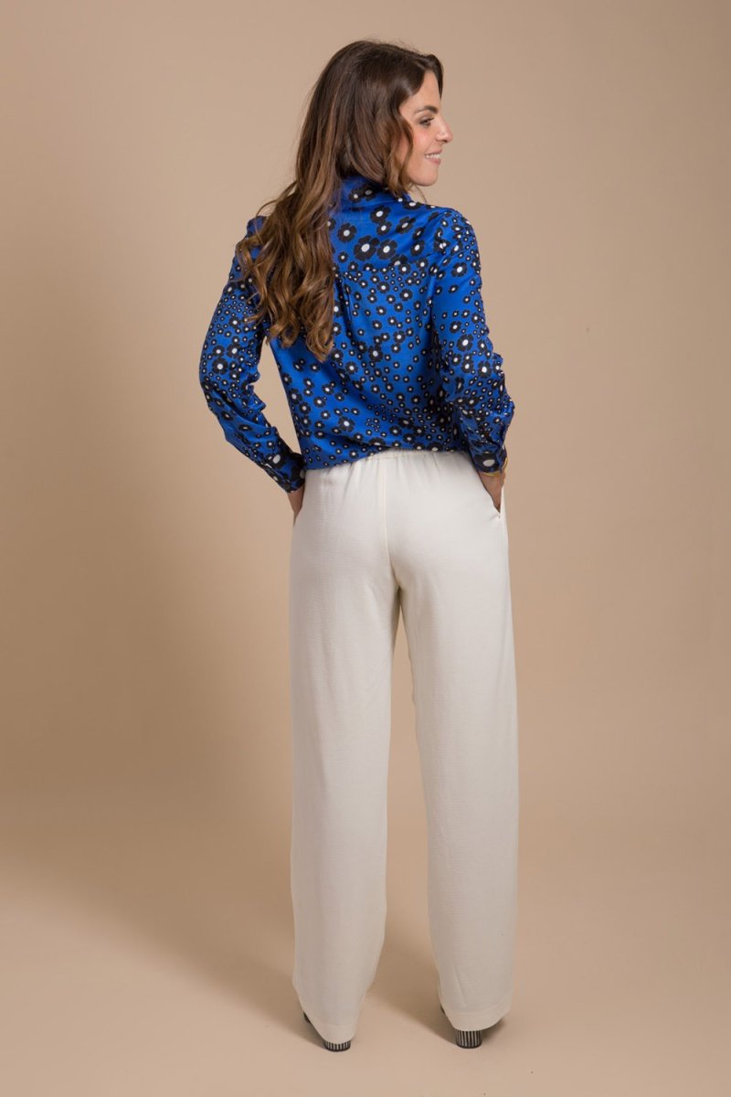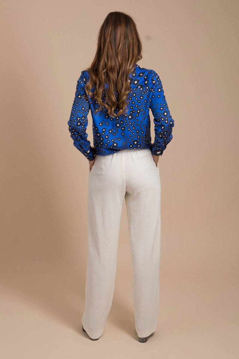 Pantalon femme confectionné dans un beau tissu en laine couleur crème. Sa coupe fluide et ample associée à sa couleur crème donnera du style à vos looks. Doté d’une ceinture élastique au dos, il offre un confort que ce soit au bureau ou en week-end. Il s’adapte à toutes les occasions. Ce joli pantalon est créé et fabriqué dans notre atelier à Montpellier en France.