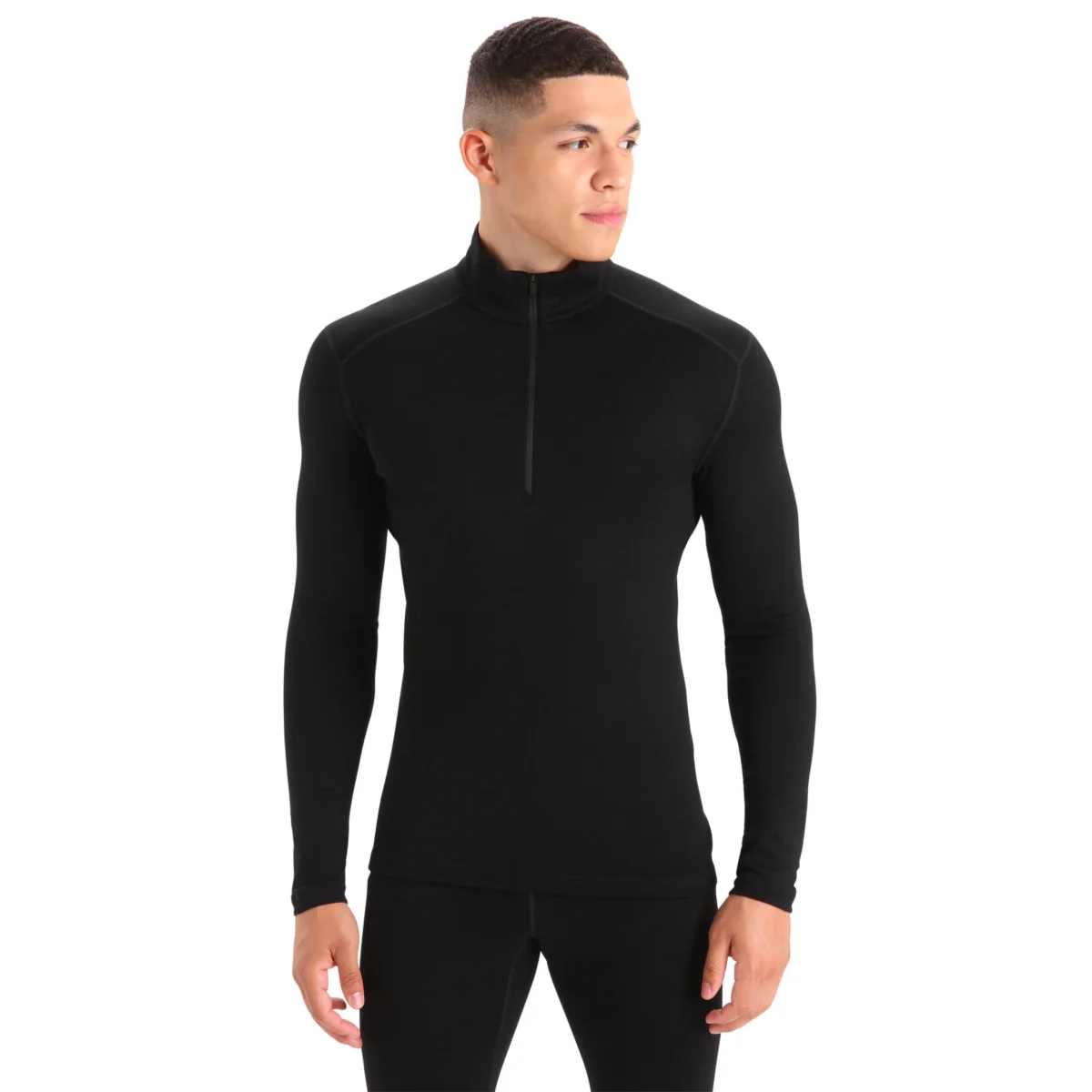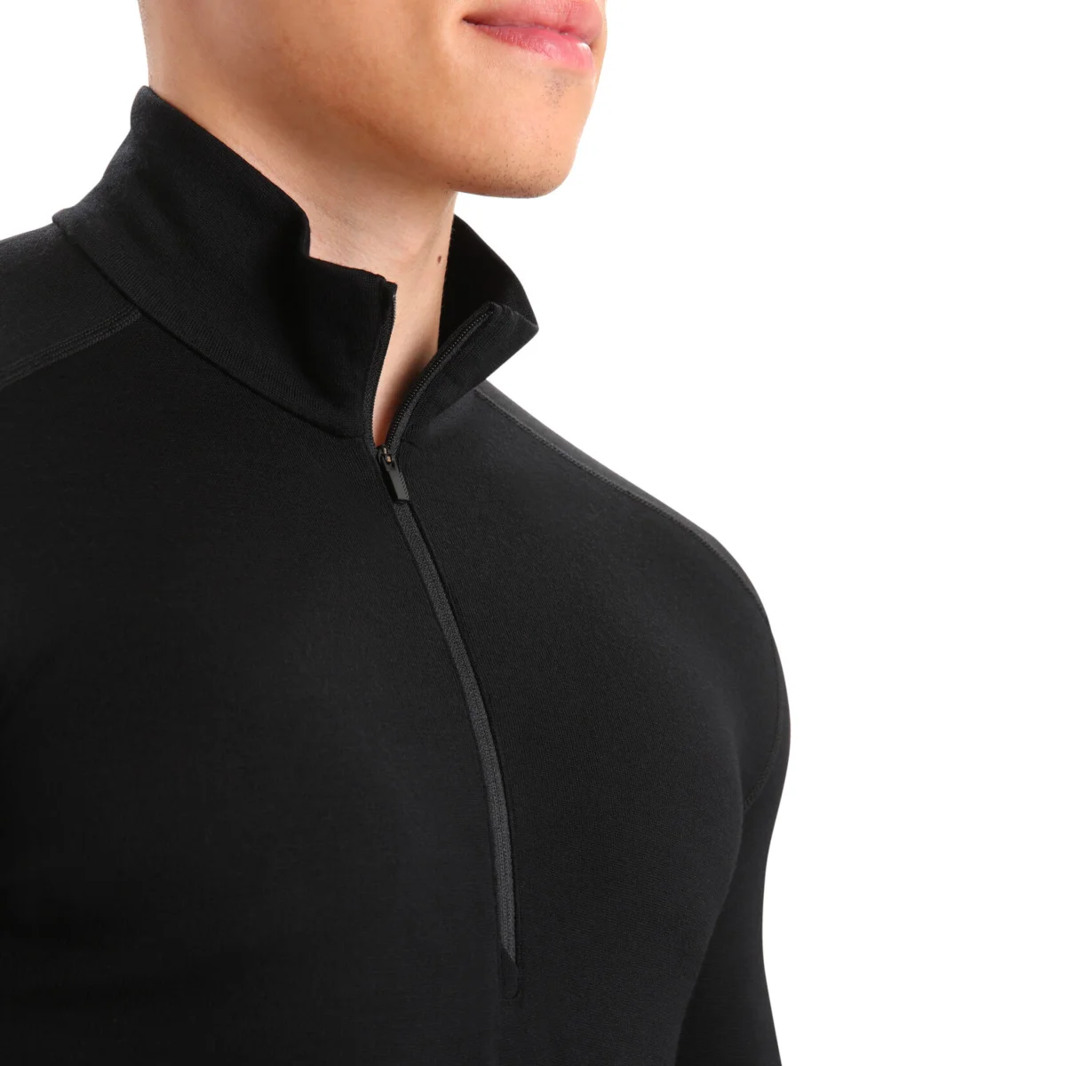 100% laine de Mérinos Manches longues Coutures plates Coupe regular Col zippé