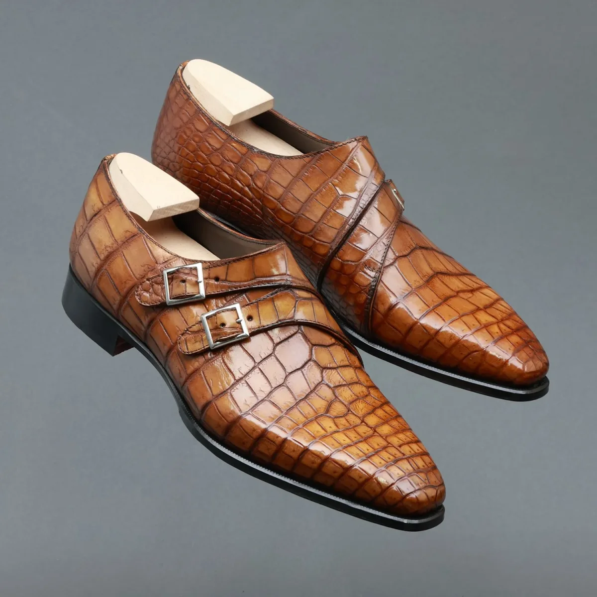 Derby à double boucle Alexandre en cuir de crocodile