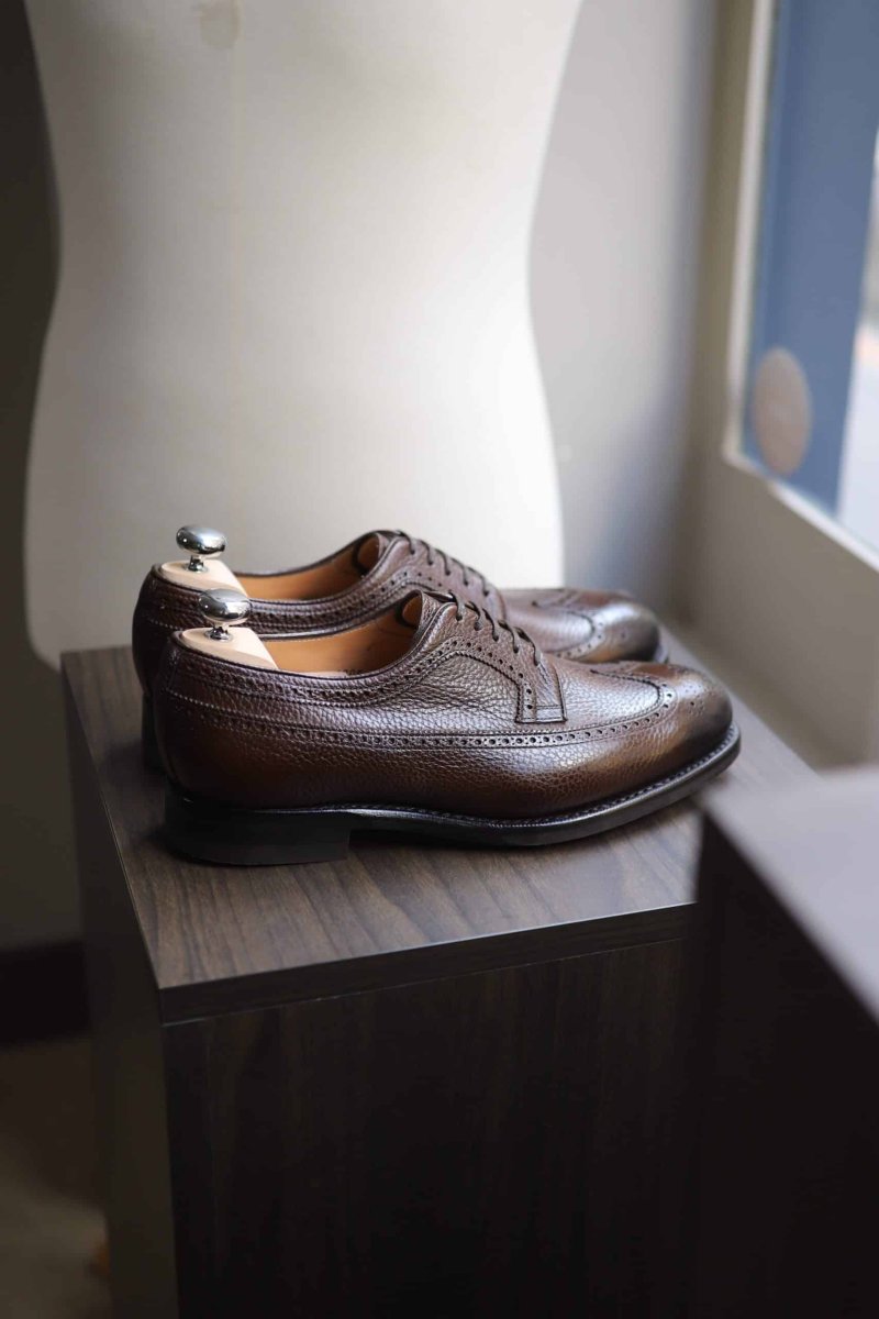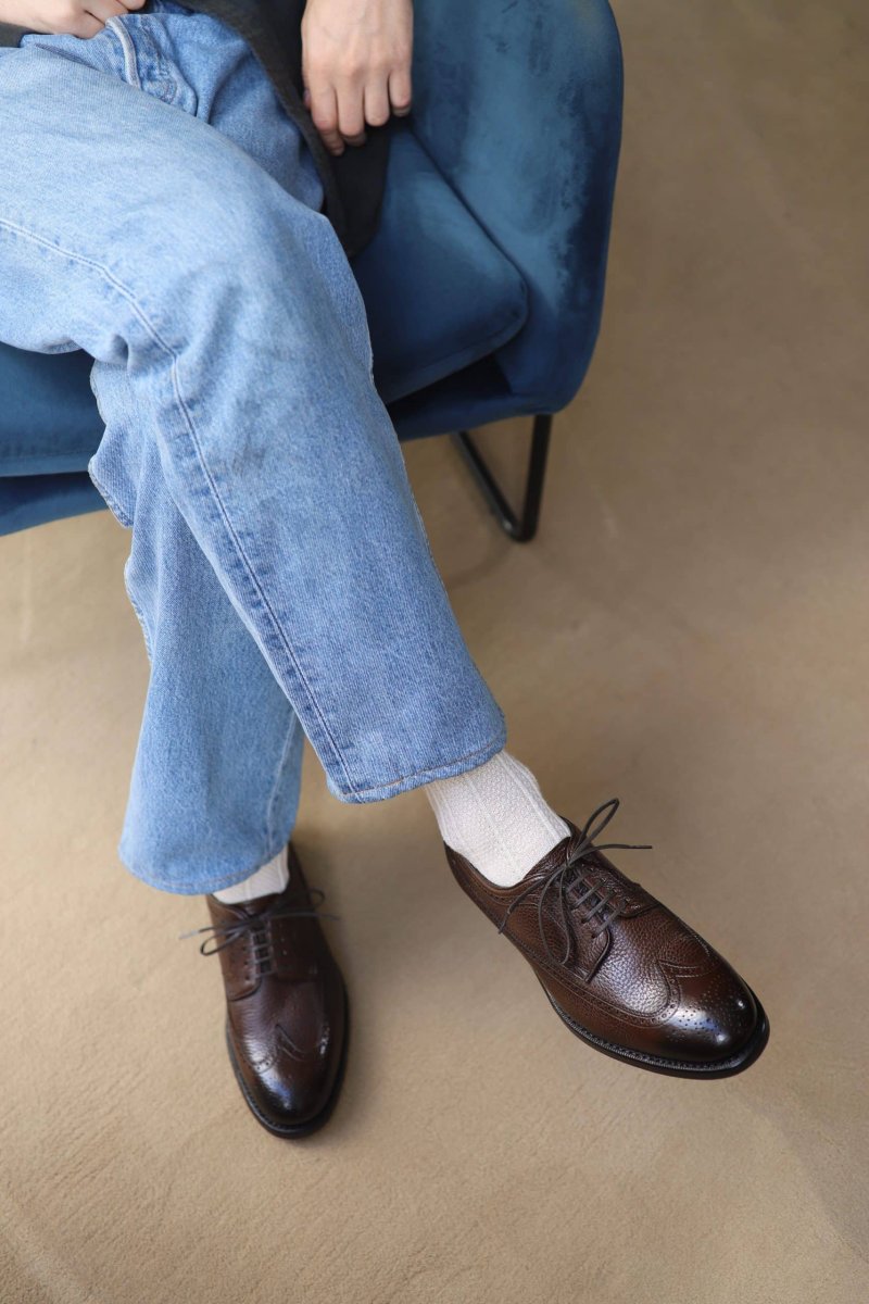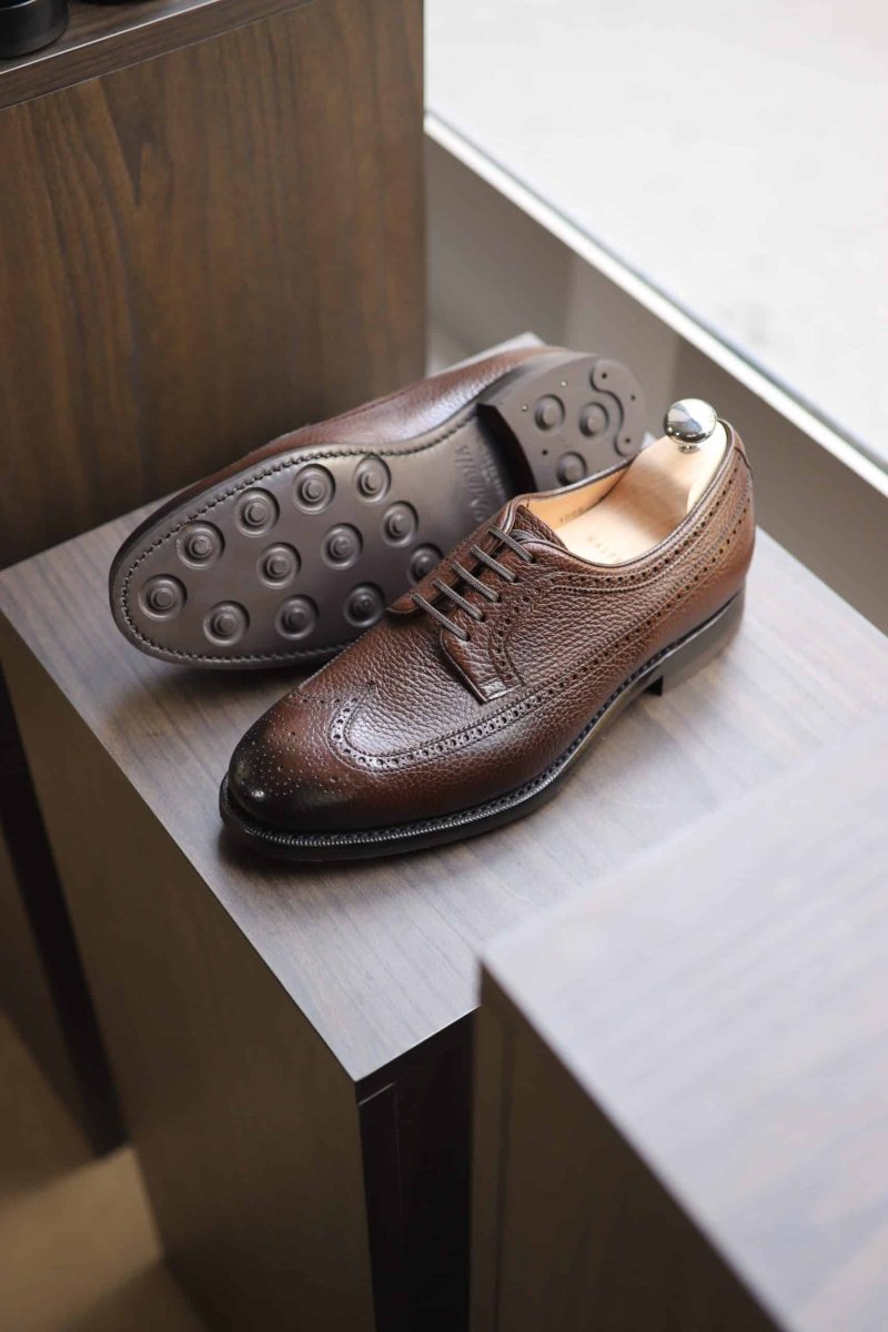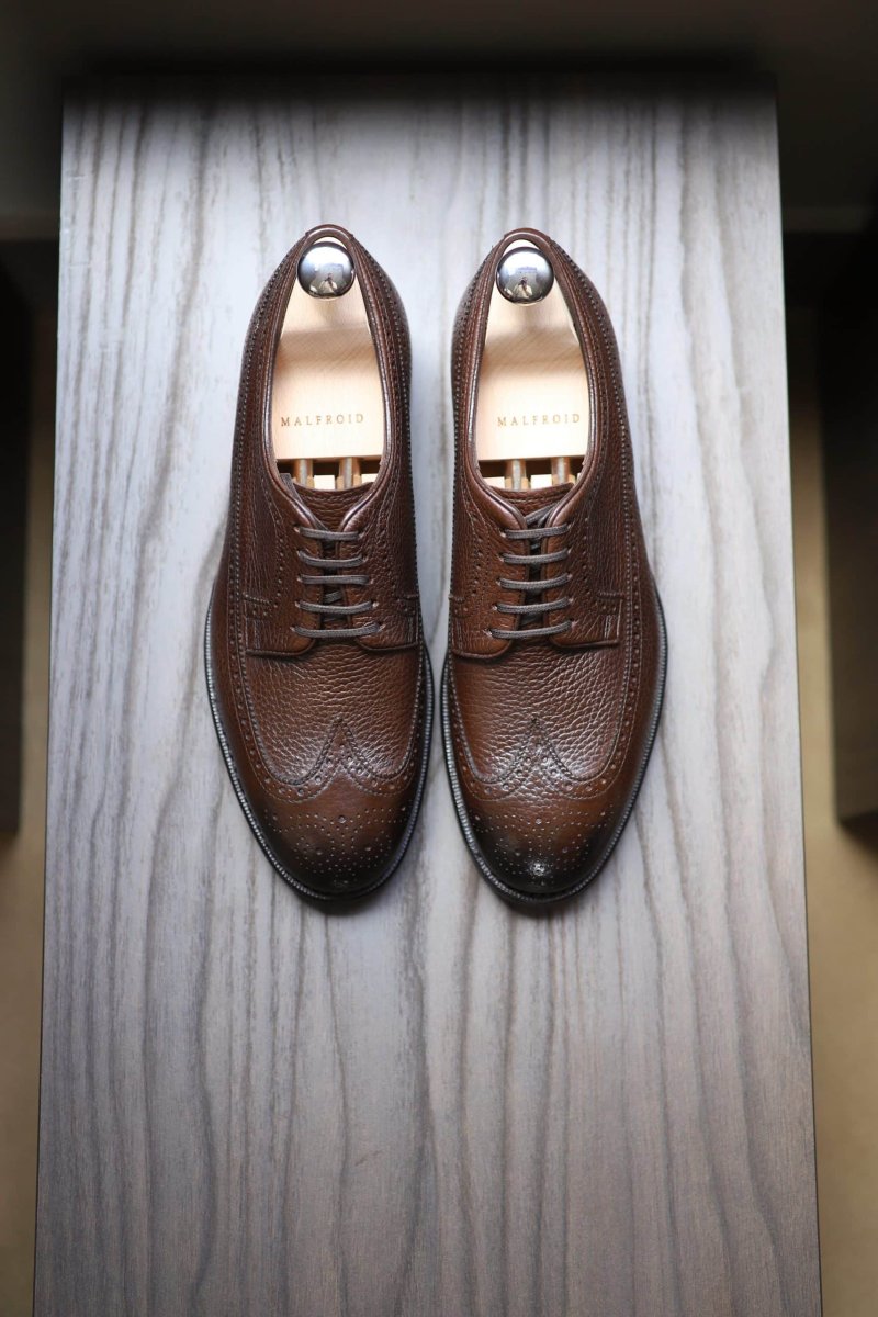 Permanent Voici le Brogue-Master de chez Malfroid. Pourquoi “Master” ? Sans doute parce que non content de redéfinir le mètre étalon du soulier brogué, il vous laissera totalement maître de votre élégance, dans tous les contextes et toutes les situations et votre silhouette le remerciera. Signes particuliers de cette merveille d’équilibre : c’est un full brogue racé (il est percé de part en part de ces petits trous gracieux, motifs qu’on appelle brogues) avec un bout wingtip (en aile d’oiseau) qui monte bien haut sur l’empeigne puis circonvient le soulier et vous emporte sur une semelle gomme souple et robuste. Lire Plus Son cuir de…