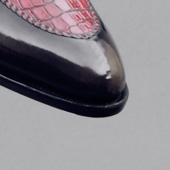 Charles est un derby chasse dont le nez est une couture dite « jointée sous chair ». Monté sur notre forme Goodyear Millenium c’est un modèle classique et élégant. En box de tannage végétale la patine est à la carte. Présenté ici dans une version commande spéciale avec plateau en cuir de crocodile. Avant de faire votre choix n’hésitez pas à consulter notre « guide des tailles » et notre « guide des patines » Guide des tailles Guide des Patines