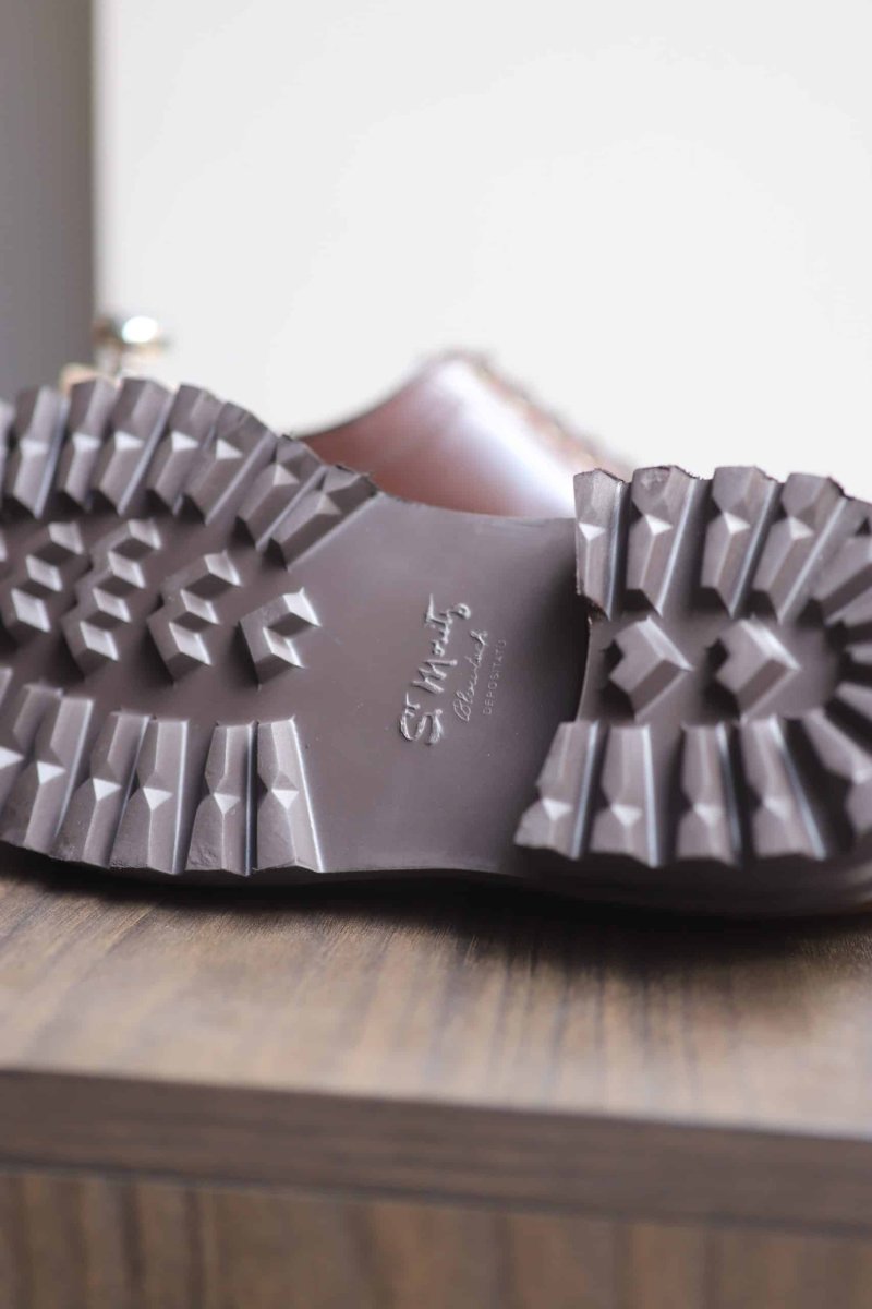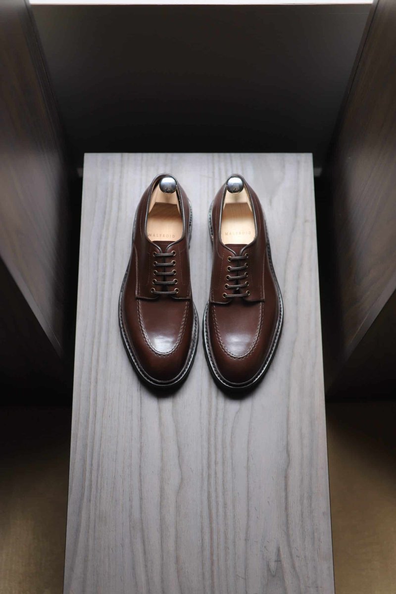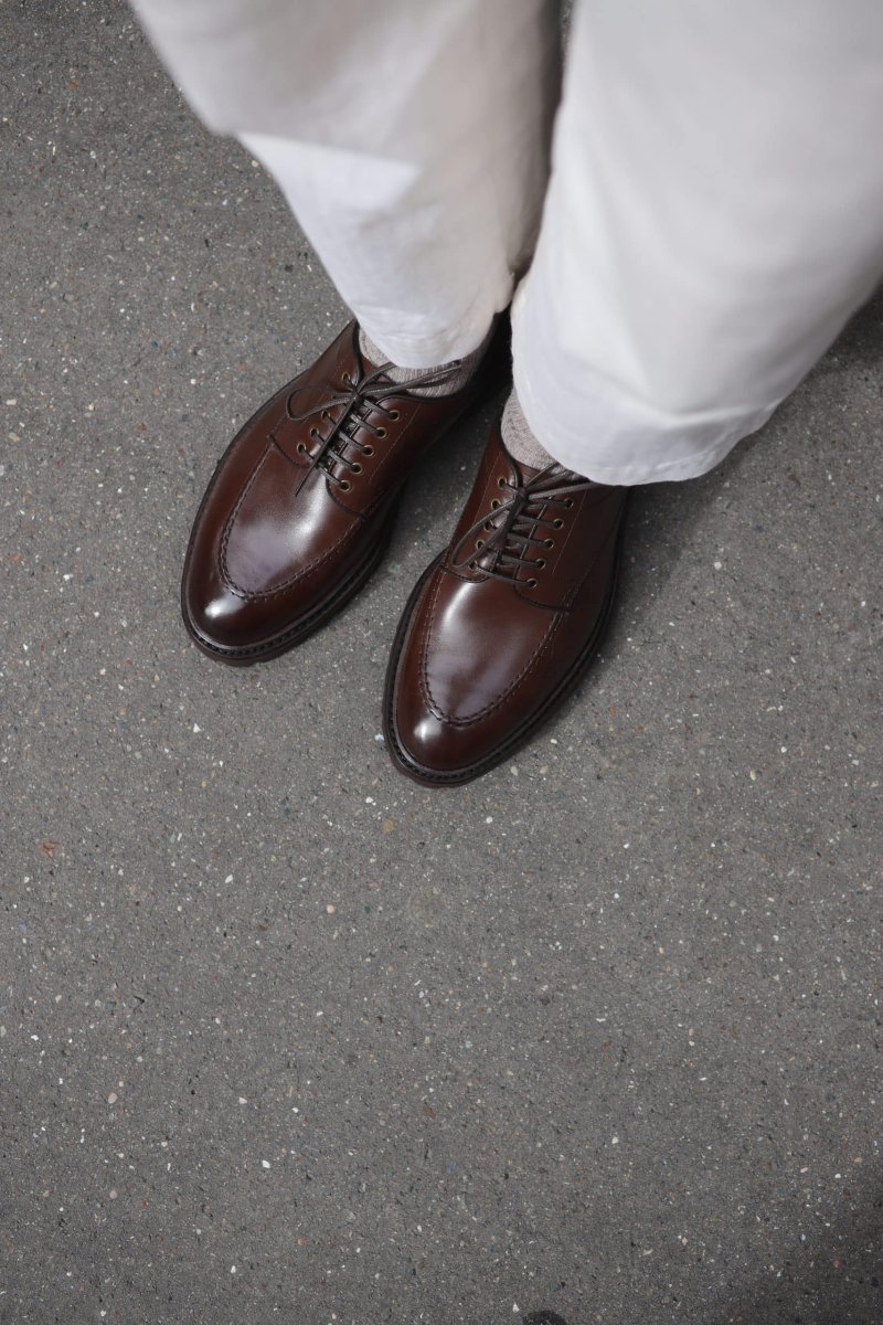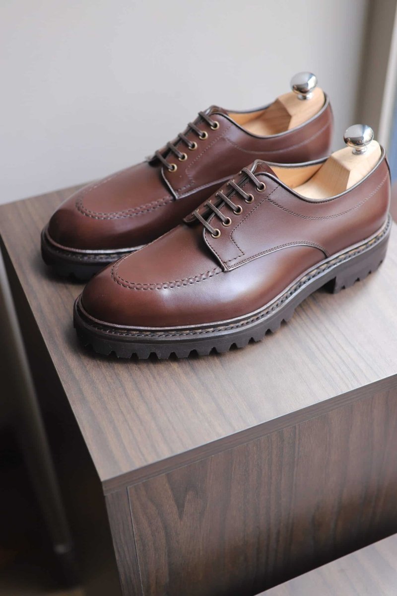 Le cousu norvégien donne de l’allure et une formidable solidité structurelle, la trépointe marron foncée se marie à merveille avec le cuir marron moyen.