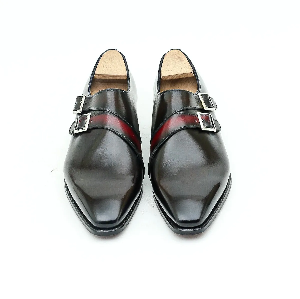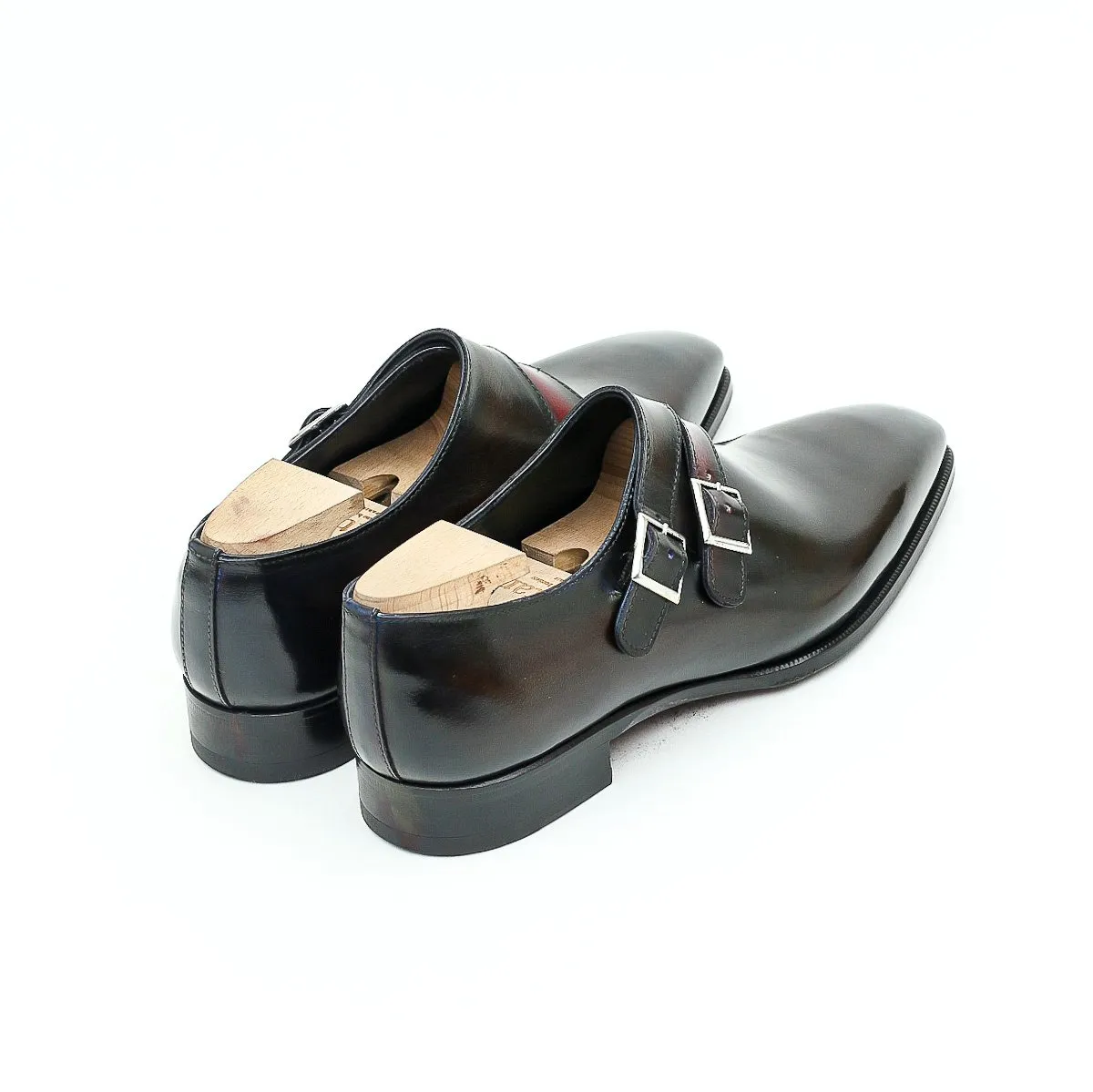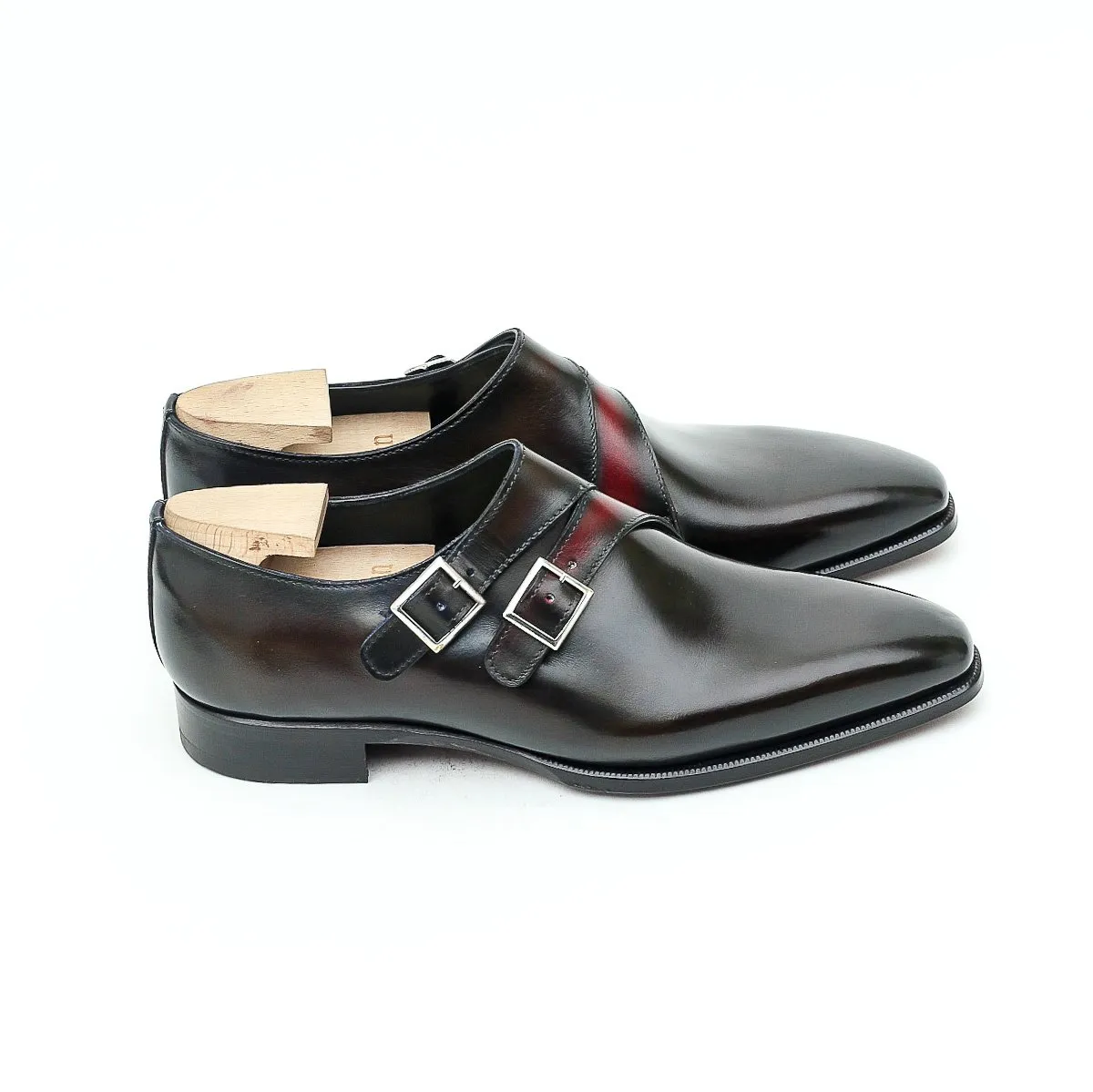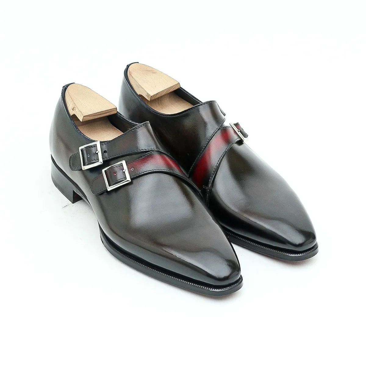 Le Derby à double boucle Alexandre propose de revisiter ce très emblématique modèle du vestiaire masculin : Le Double Boucle ou « Double Monk Strap ». Il se présente ici avec un système de boucle en « enveloppe » qui offre une ligne plus moderne et contemporaine au très british Double Boucle. Présenté ici dans une couleur Grain de Café et strap Bordeaux.