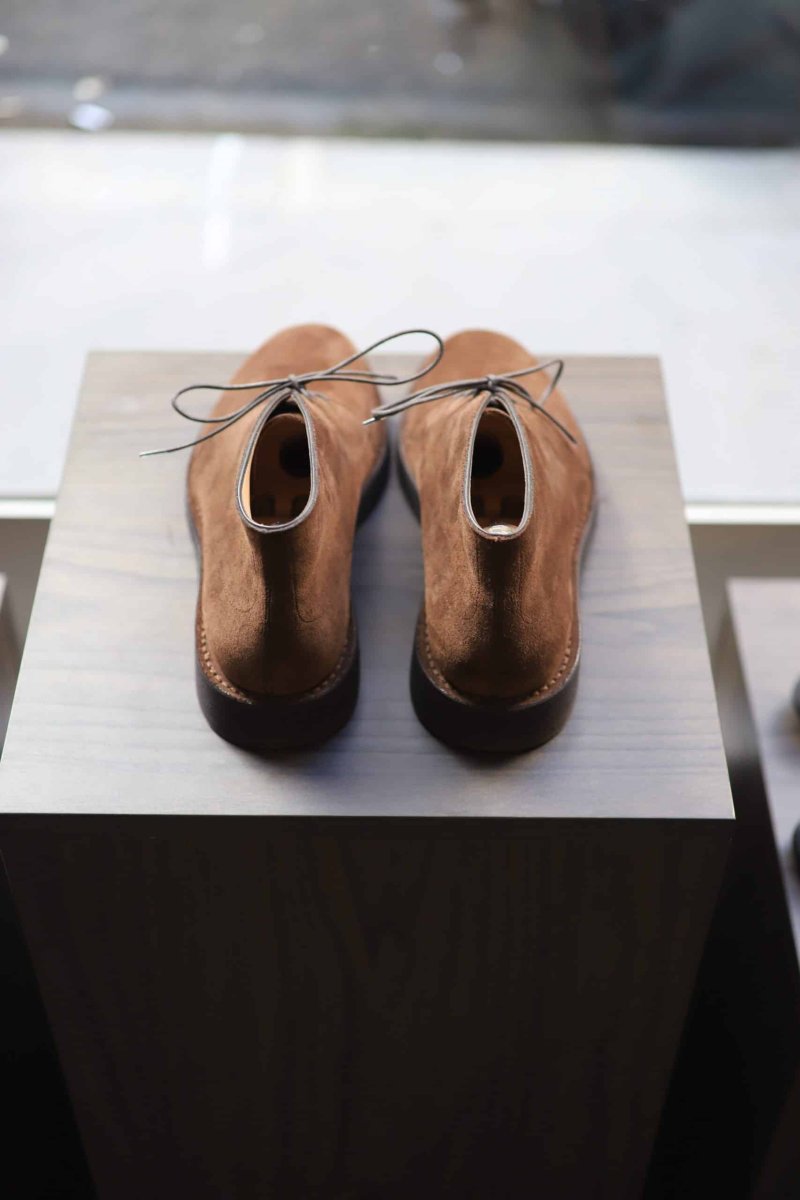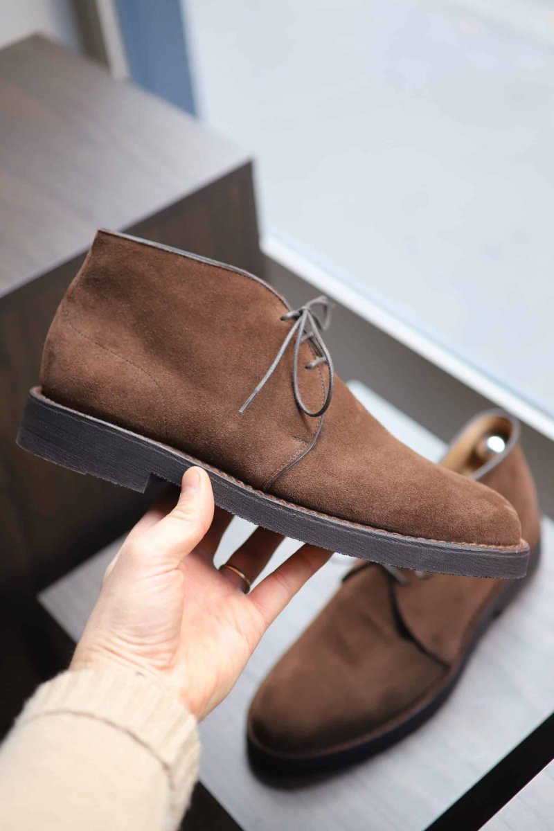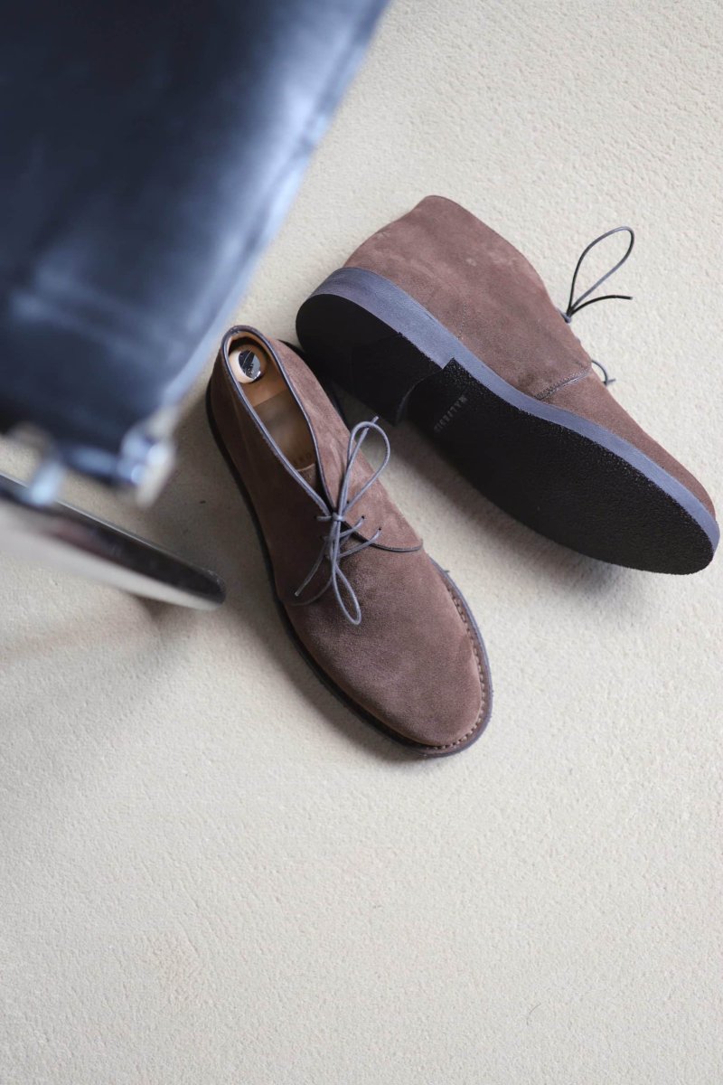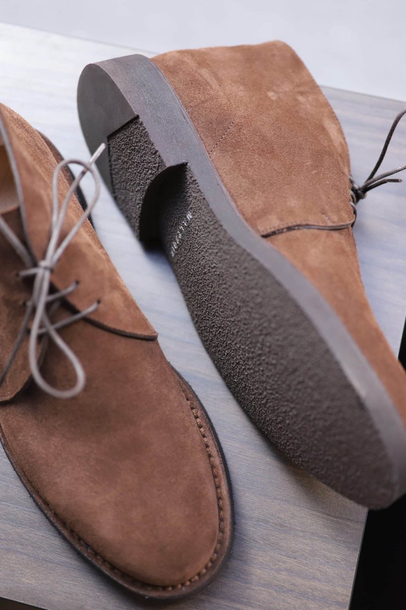 - The exclusive choice of suede calfskin because it is the softest. A crepe rubber sole, soft as a muffin.