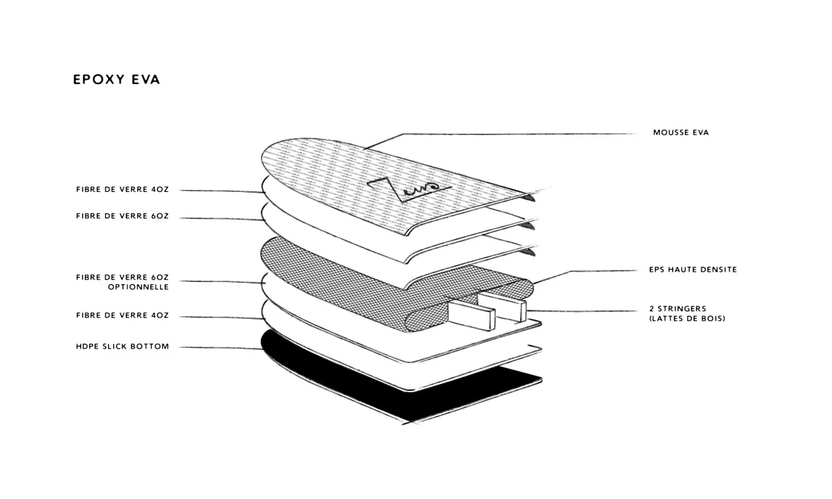 - Construction Epoxy EVA : mousse EPS haute densité + résine époxy
