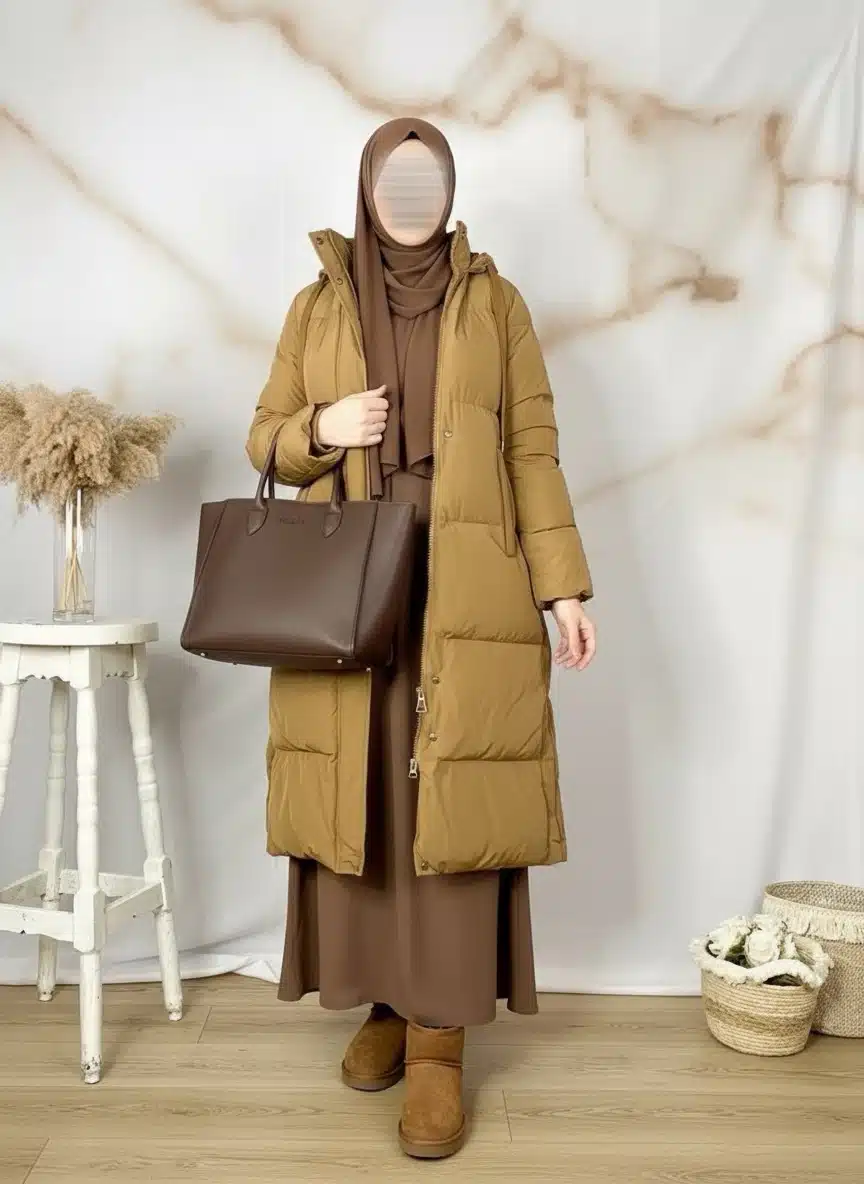 La Doudoune longue ALASKA de haute qualité est faite pour vous si vous êtes à la recherche d’un manteau long femme qui ne dévoile pas vos formes et que vous pourrez porter au-dessous d’une abaya robe longue ou de vos jilbab deux pièces. Elle accompagnera vos abaya papillon, vos robes hijab hiver… Bref, cet épais anorak matelassé d’Hiver sera idéal pour la saison automne-hiver et se mariera avec n’importe quelle pièce de votre dressing en y ajoutant sa touche ultra chic et tendance ! Son tissu, extrêmement épais, vous protégera du froid en faisant barrière. La doudoune Alaska deviendra donc…