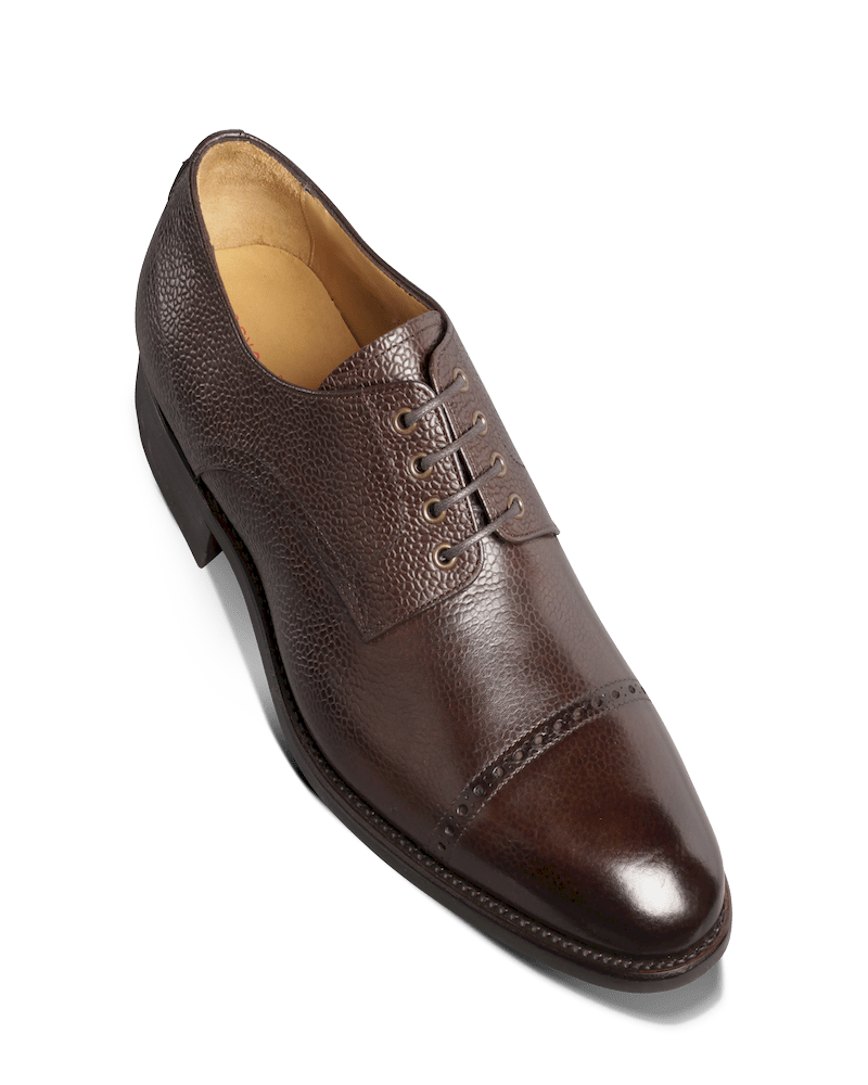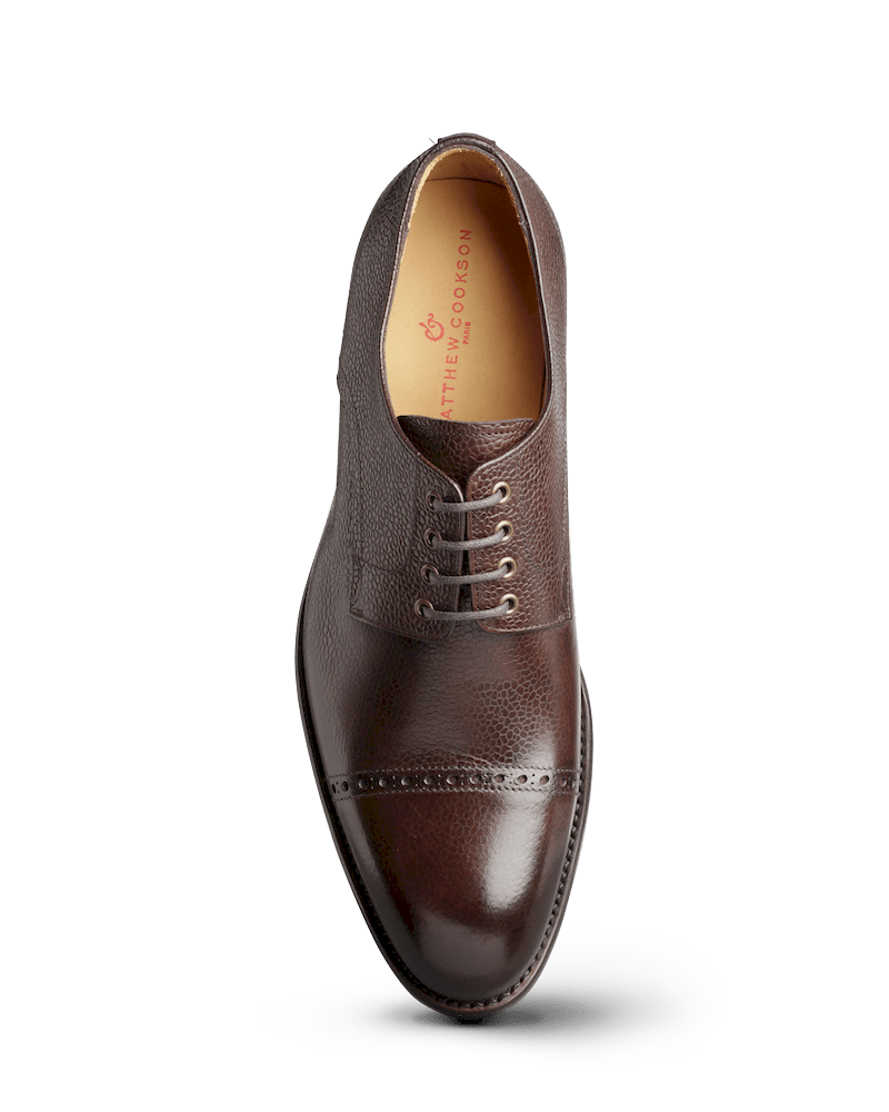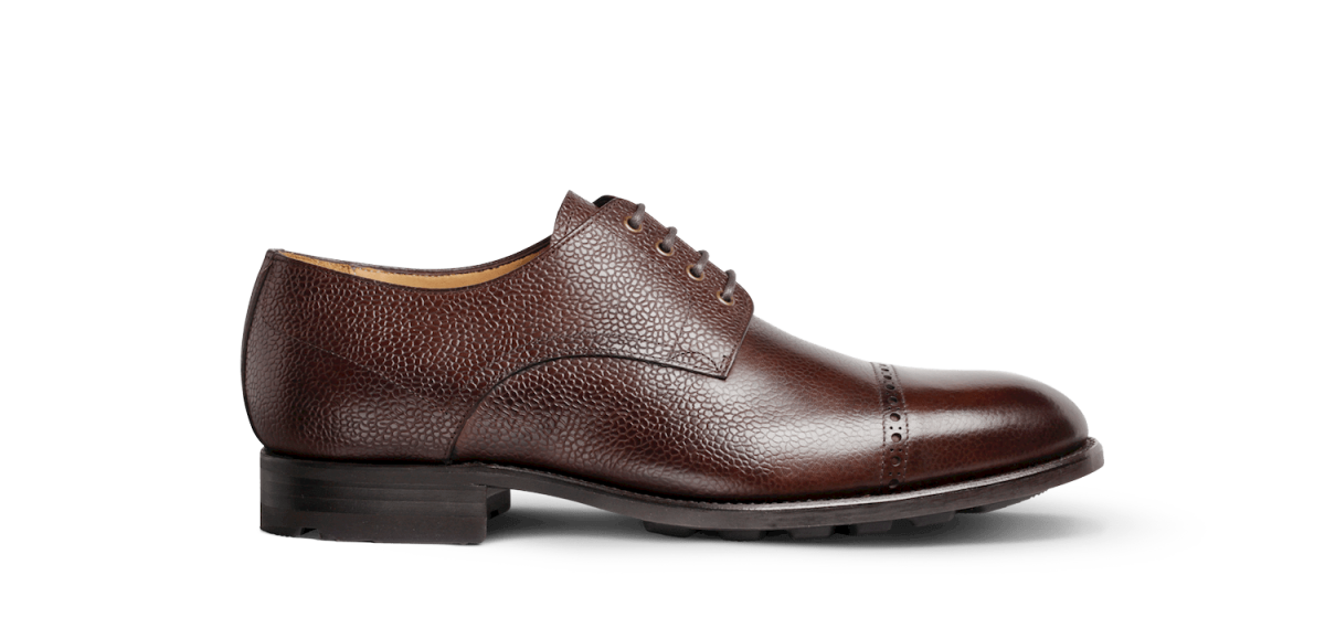 Derby 4 œillets en veau grainé monté sur une semelle gomme.
