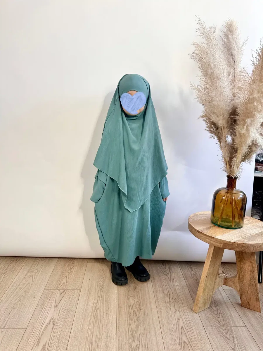 Ensemble Abaya Khimar Fille en Jazz – Élégance et Praticité pour Nos Petites Princesses