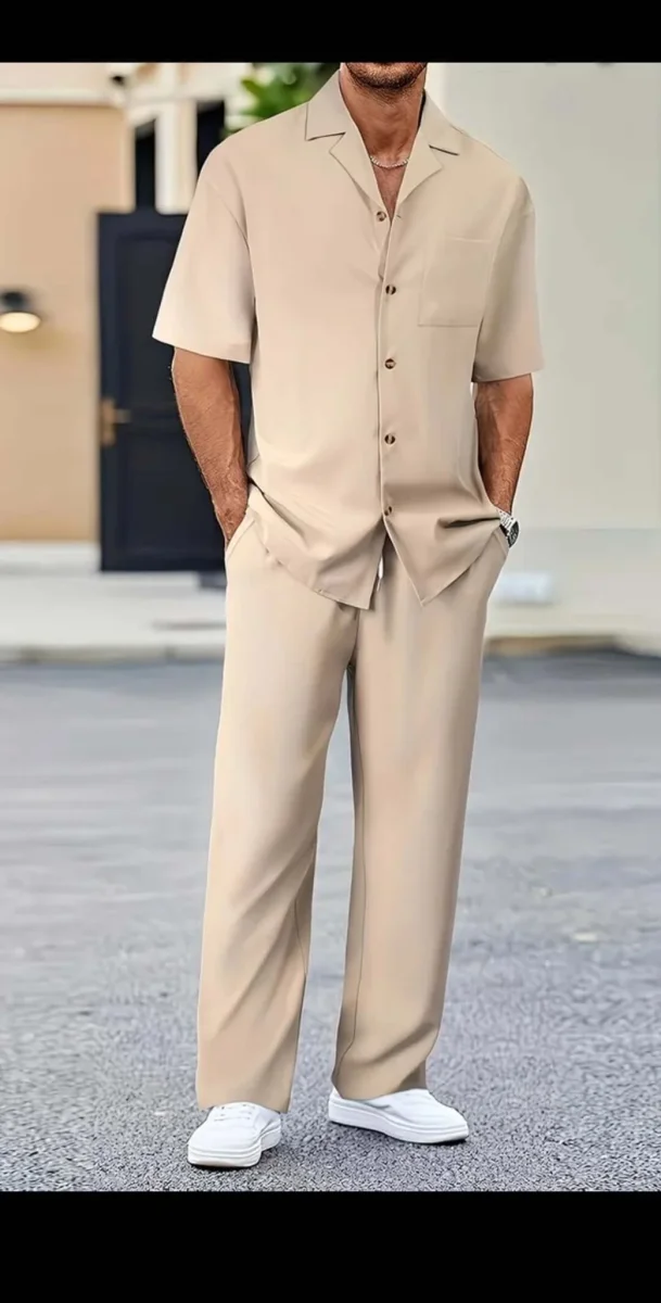 L’ensemble beige est un indispensable du vestiaire masculin, offrant un équilibre parfait entre chic et décontraction.