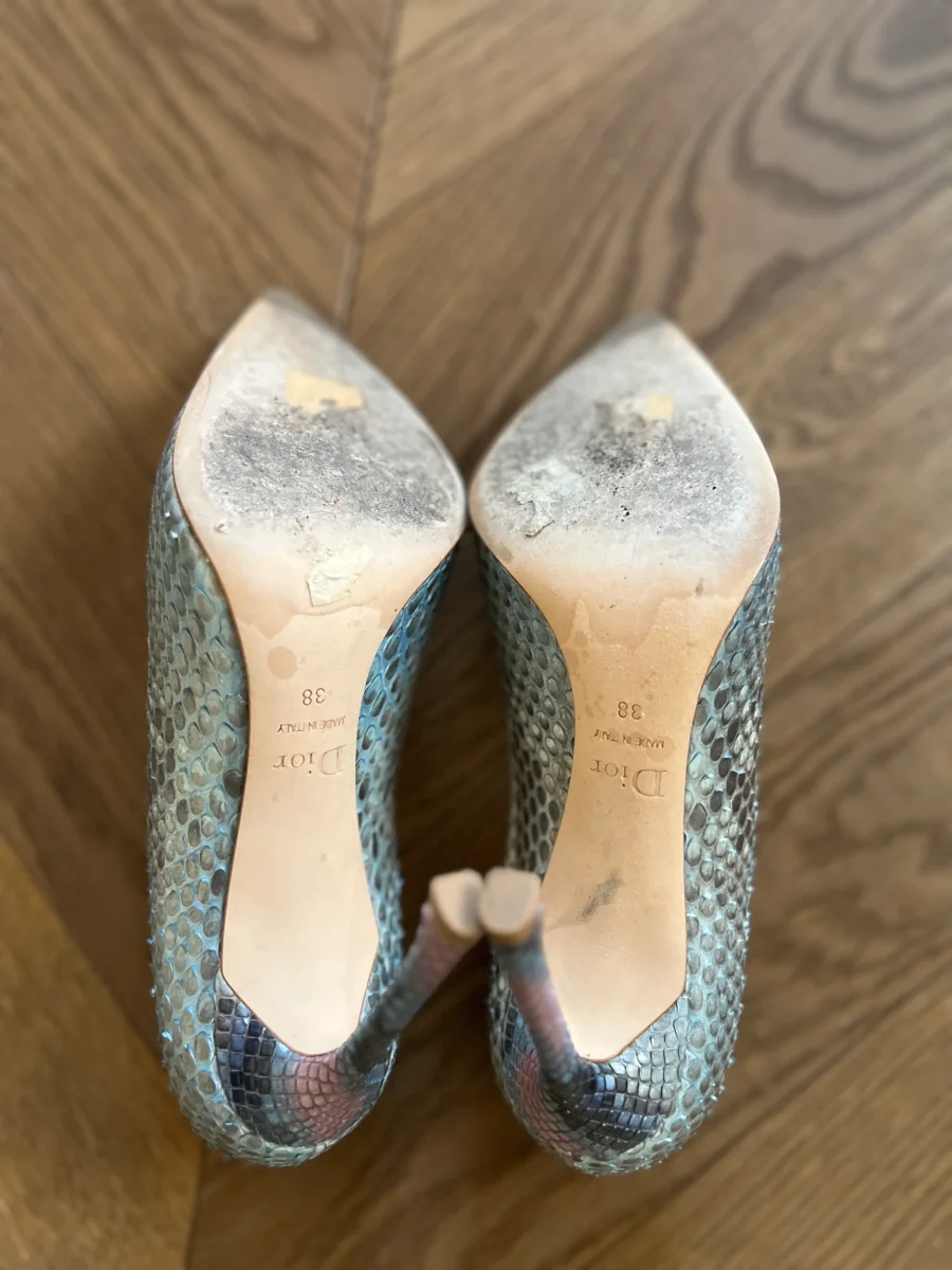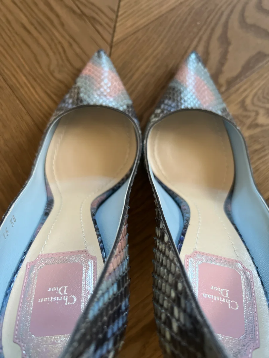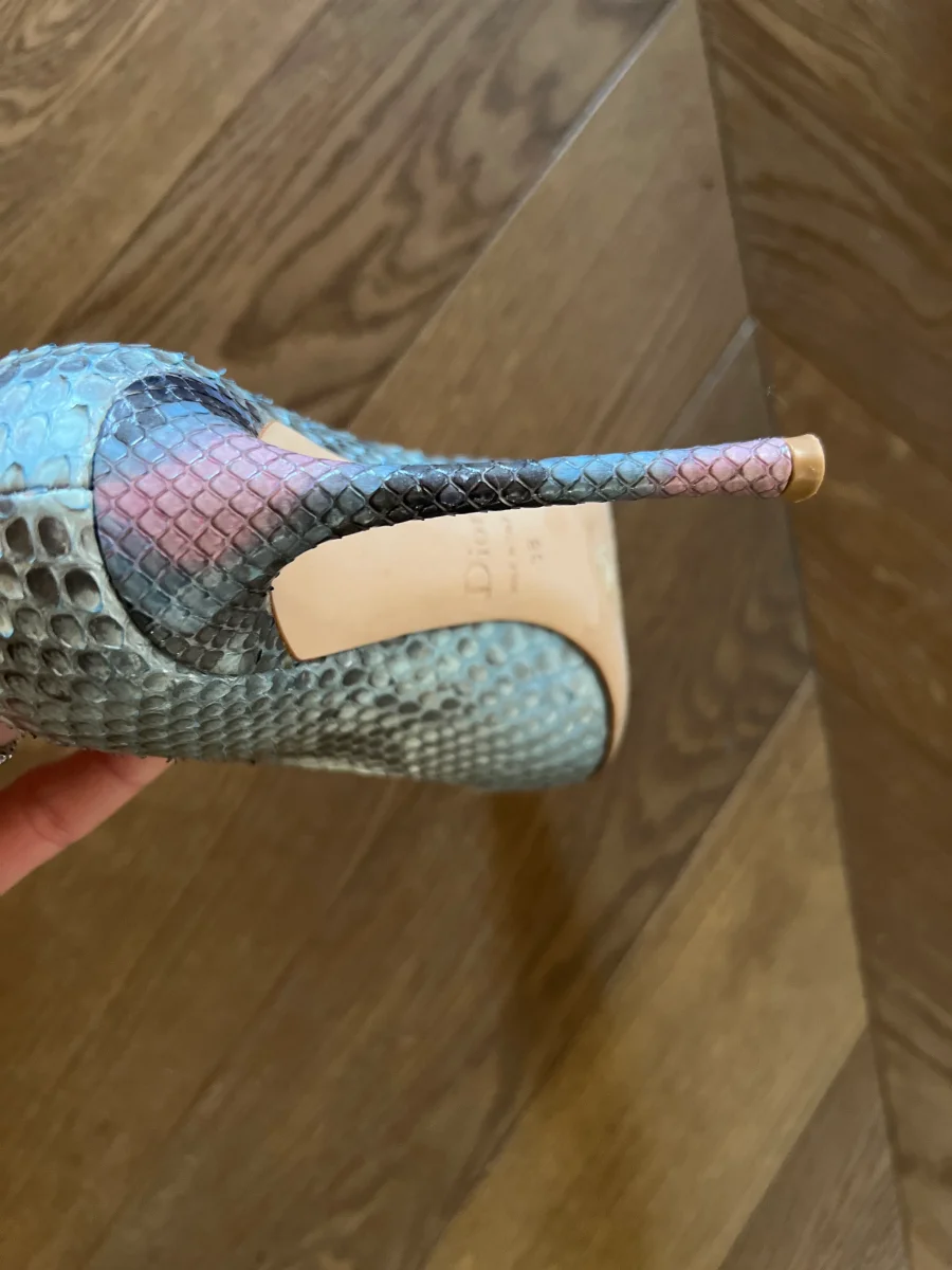Très très bon état comme neuves Marque : Christian Dior Pointure 38 Hauteur talons: 10,5cm Pour la longueur je mesure 1m71 Prix d’achat estimé neuf 1090€