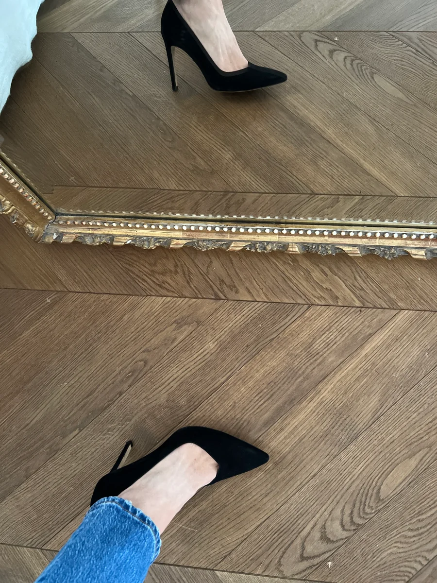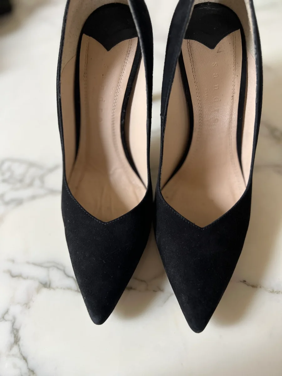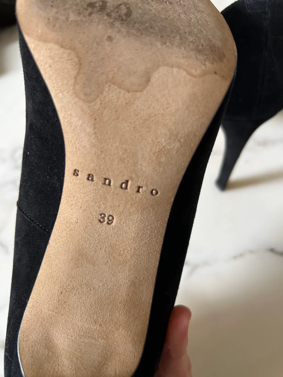 Très bon état Marque : Sandro Pointure: 39 Hauteur des talons: 10cm 100% Daim Pour la longueur je mesure 1m71 Prix d’achat estimé neuf 265€