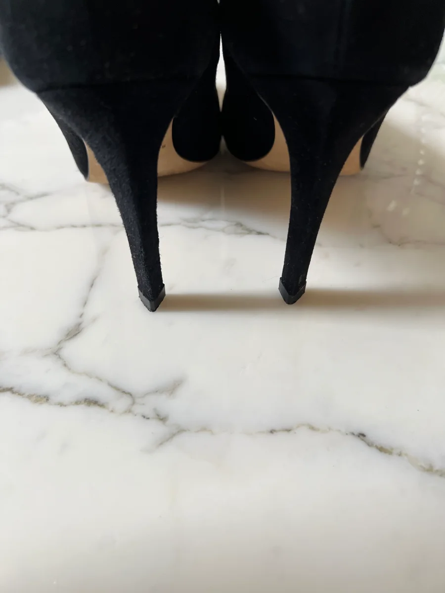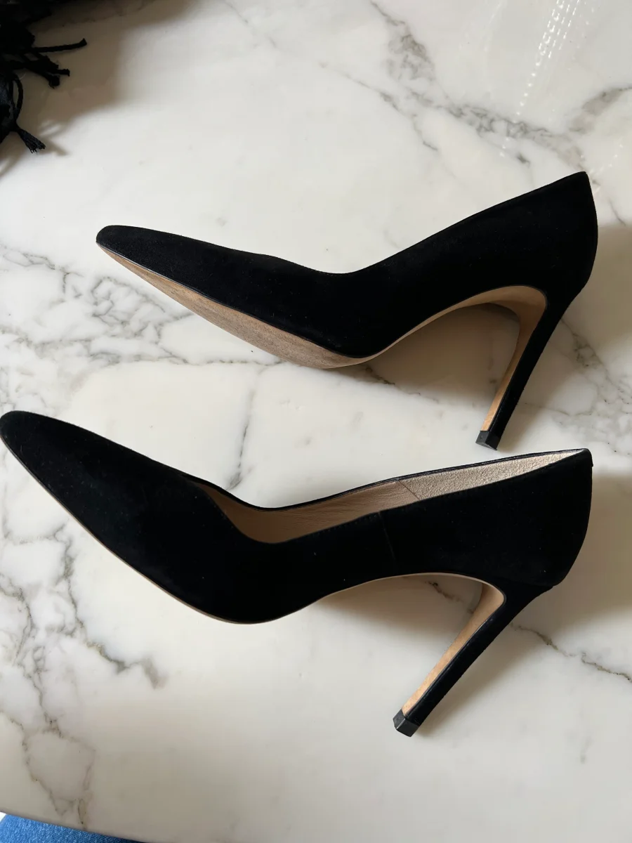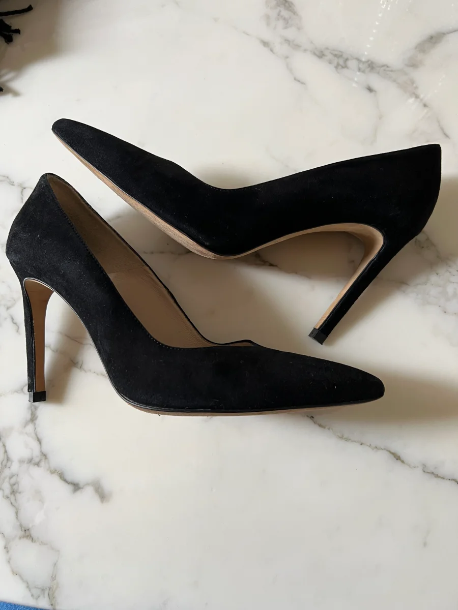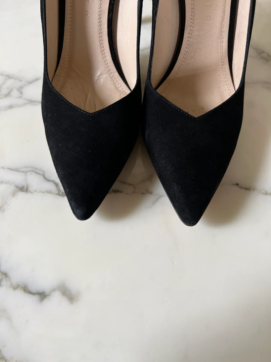 Très bon état Marque : Sandro Pointure: 39 Hauteur des talons: 10cm 100% Daim Pour la longueur je mesure 1m71 Prix d’achat estimé neuf 265€