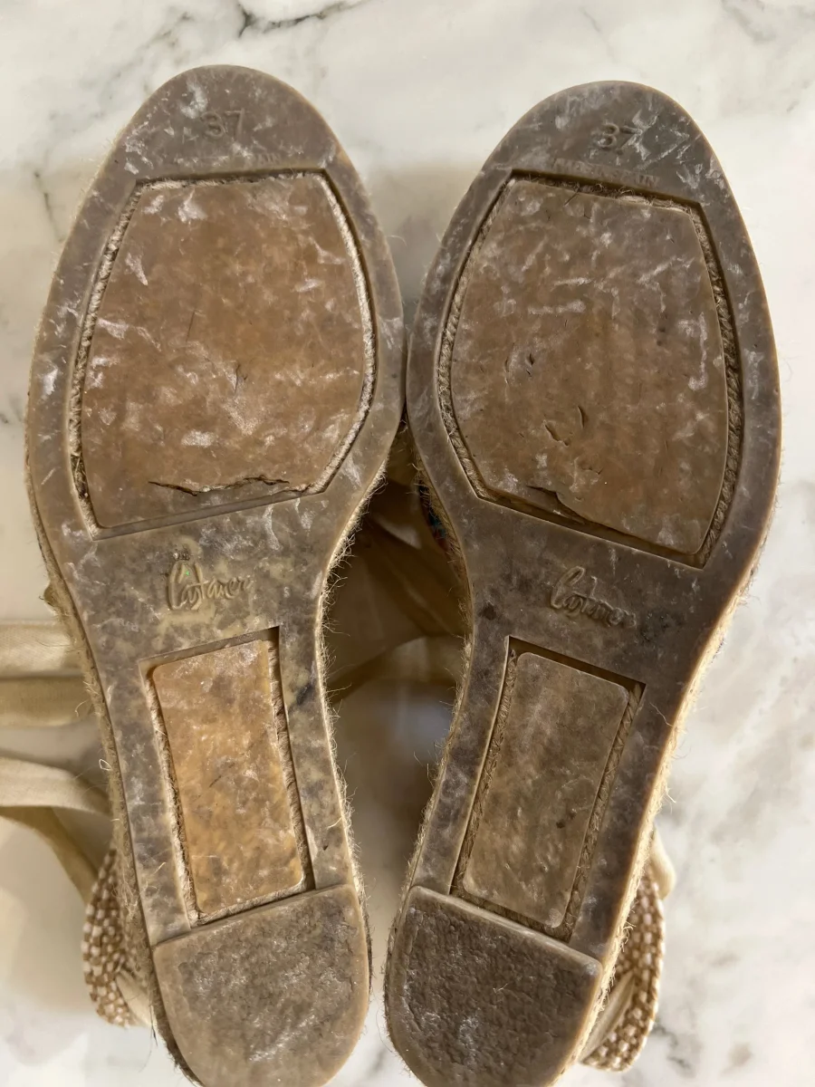 Bon état général Pointure 37 Hauteur talons : 9cm Pour la longeur je mesure 1m71 Prix d’achat estimé neuf 145€