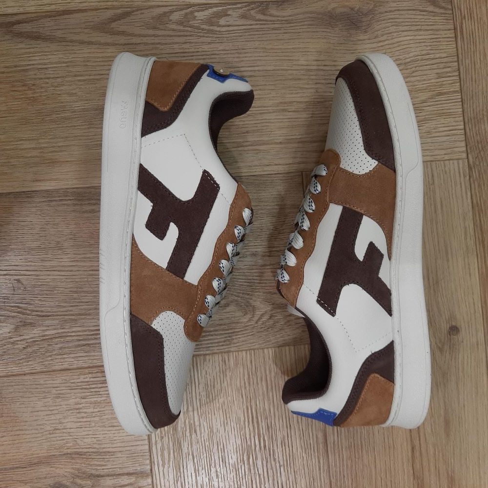 Découvre notre basket basse HAZEL écrue et marron signée FAGUO, inspirée des baskets des années 80 pour un look rétro et tendance !