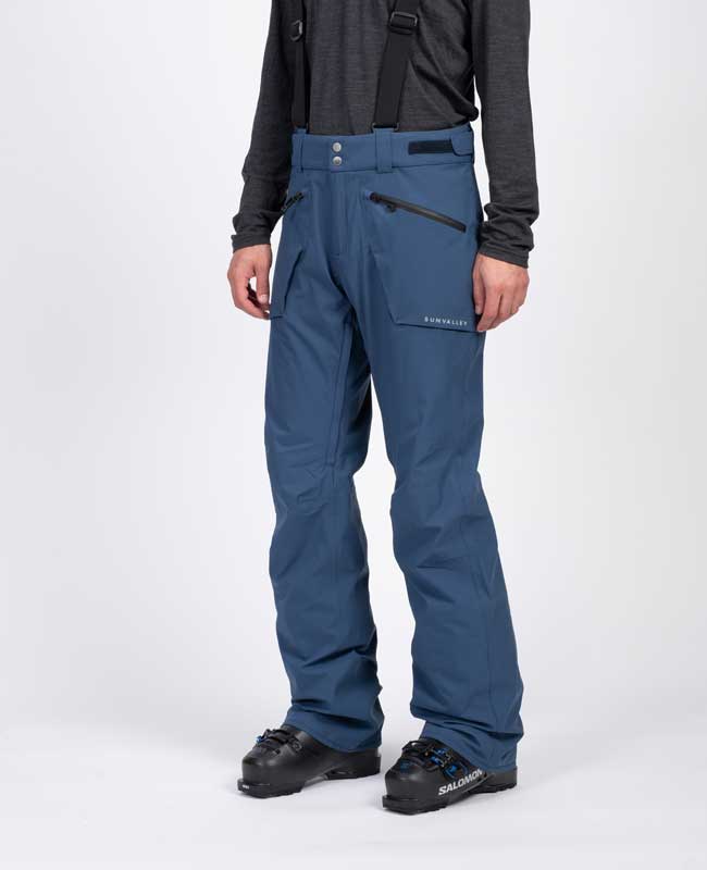 Pantalon de ski homme Fordal, de la marque française Sun Valley, coloris bleu. Léger et confortable. Look original grâce à ses deux poches plaquées, fermées par un zip étanche.