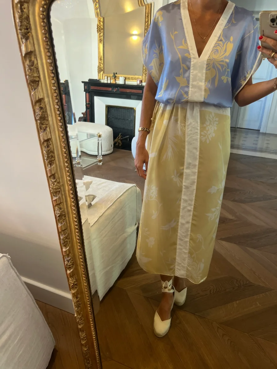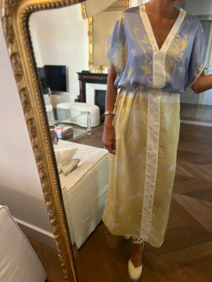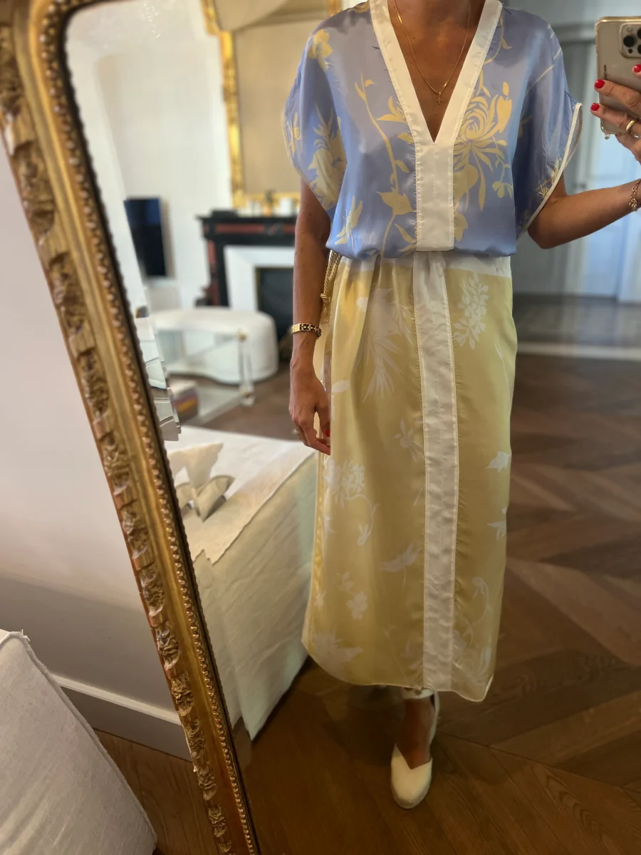 Forte Forte – Robe en satin ecrue et bleu ciel