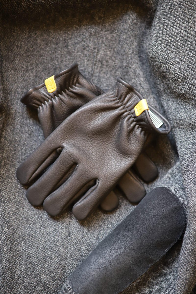 Une main de velours dans un gant de cerf… Imaginons un instant le gant idéal, un élégant-roi-des-gants qui trônerait, impérial, là-haut dans les ‘R’ comme : Robuste (fabriqué à la main aux Etats-Unis), Raffiné (fabriqué dans un cuir de cerf américain, tannage végétal, cousu avec un fil Gütterman), Rare (en édition limité, comme un trésor). Ce gant, nous l’avons. Gant de rocaille, de bois ou d’épineux, gant de guidon de moto, gant pour enlacer la taille de sa douce. Gant pour les travaux et les jours ; gant de racaille (oh you rascal, you!), méchamment beau avec (le…