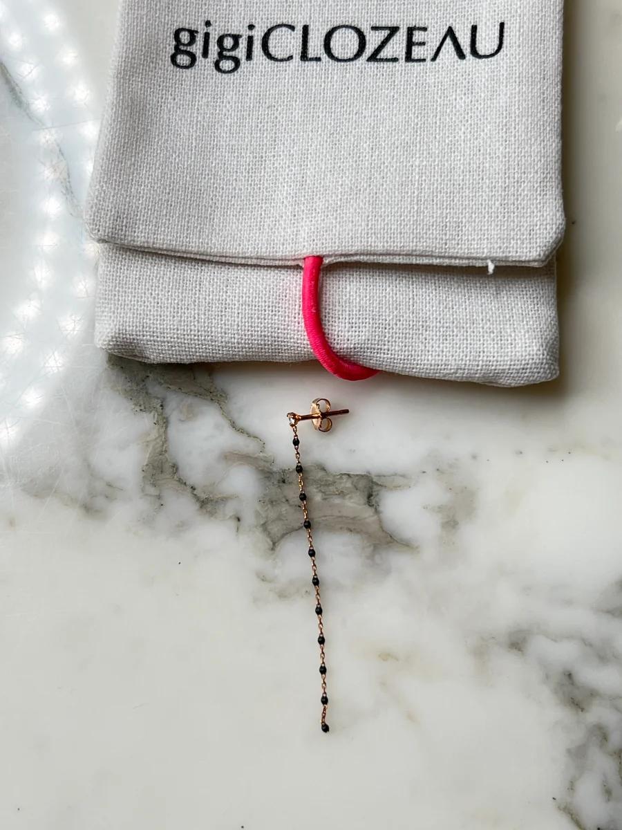 GigiClozeau – 1 Boucle d’oreilles noire Gigi Party, diamants, or rose
