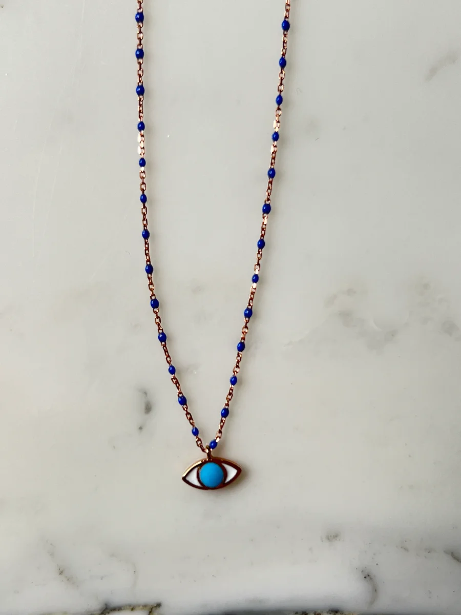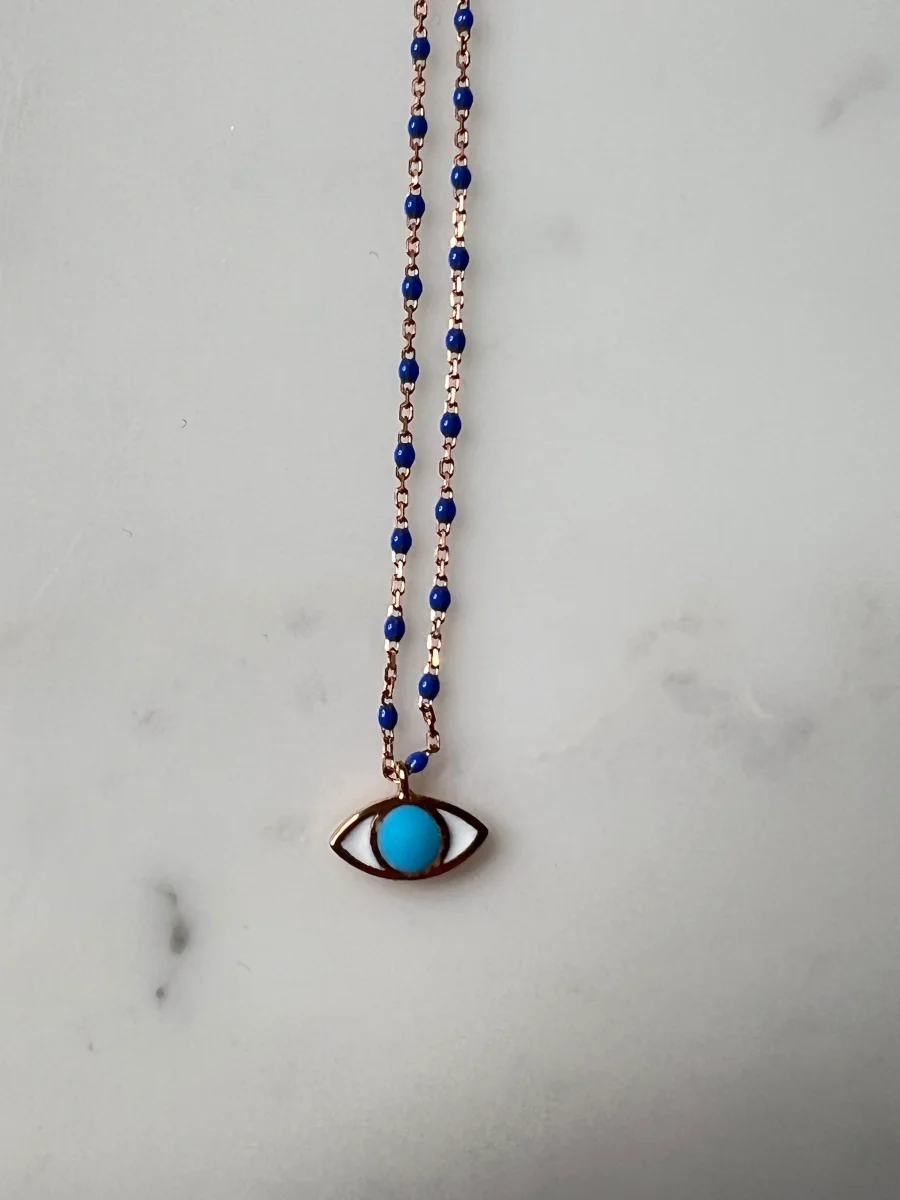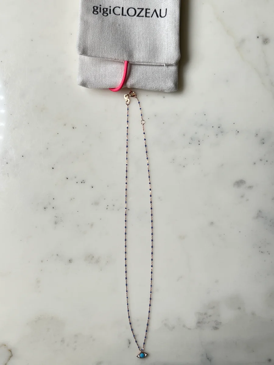 GigiClozeau – Collier Eye Classic bleuet, or rose, 42 cm