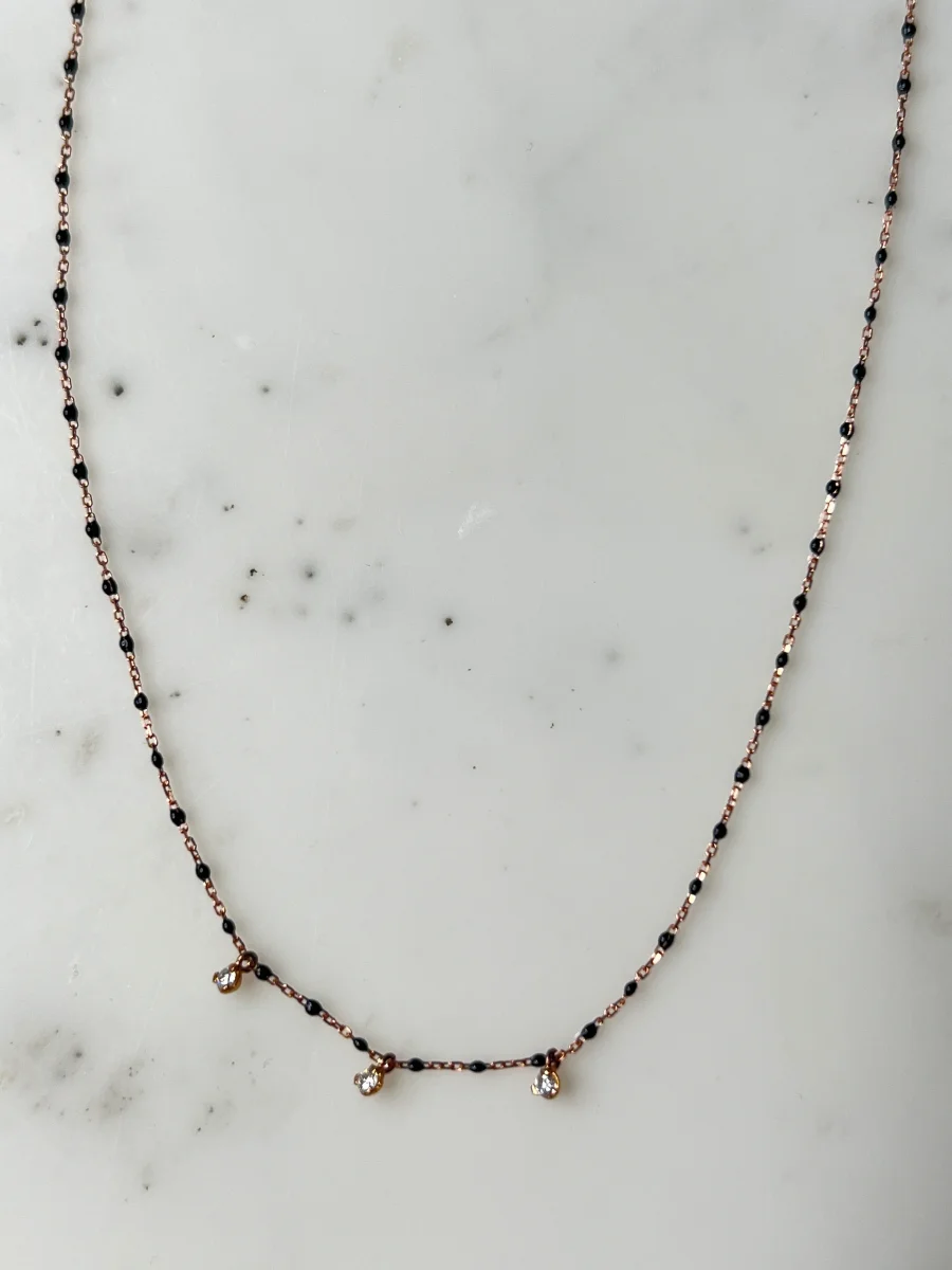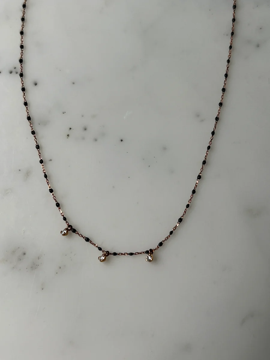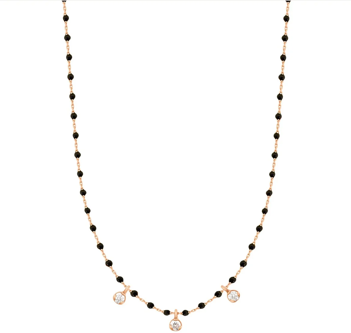 GigiClozeau – Collier Mini en or rose, résine noire et diamants, 42cm