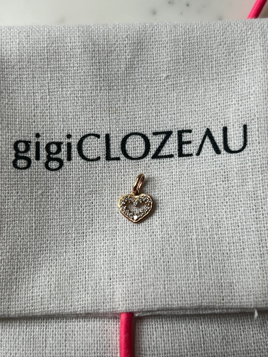 Jamais porté Marque : Gigi clozeau Modèle : Coeur suprême Or rose Pendentif coeur or 18 carats serti de 14 diamants. composition: or 18 carats (750 millièmes), diamant (0.14 ct) info taille: 0,8 cm (avec bélière 1,3 cm), pendentif vendu sans chaîne Prix d’achat Neuf: 735€