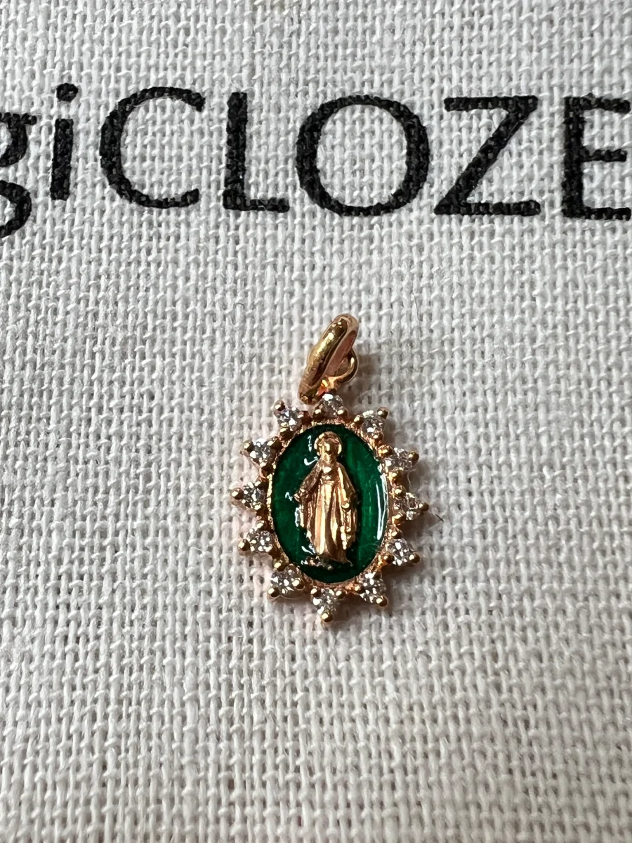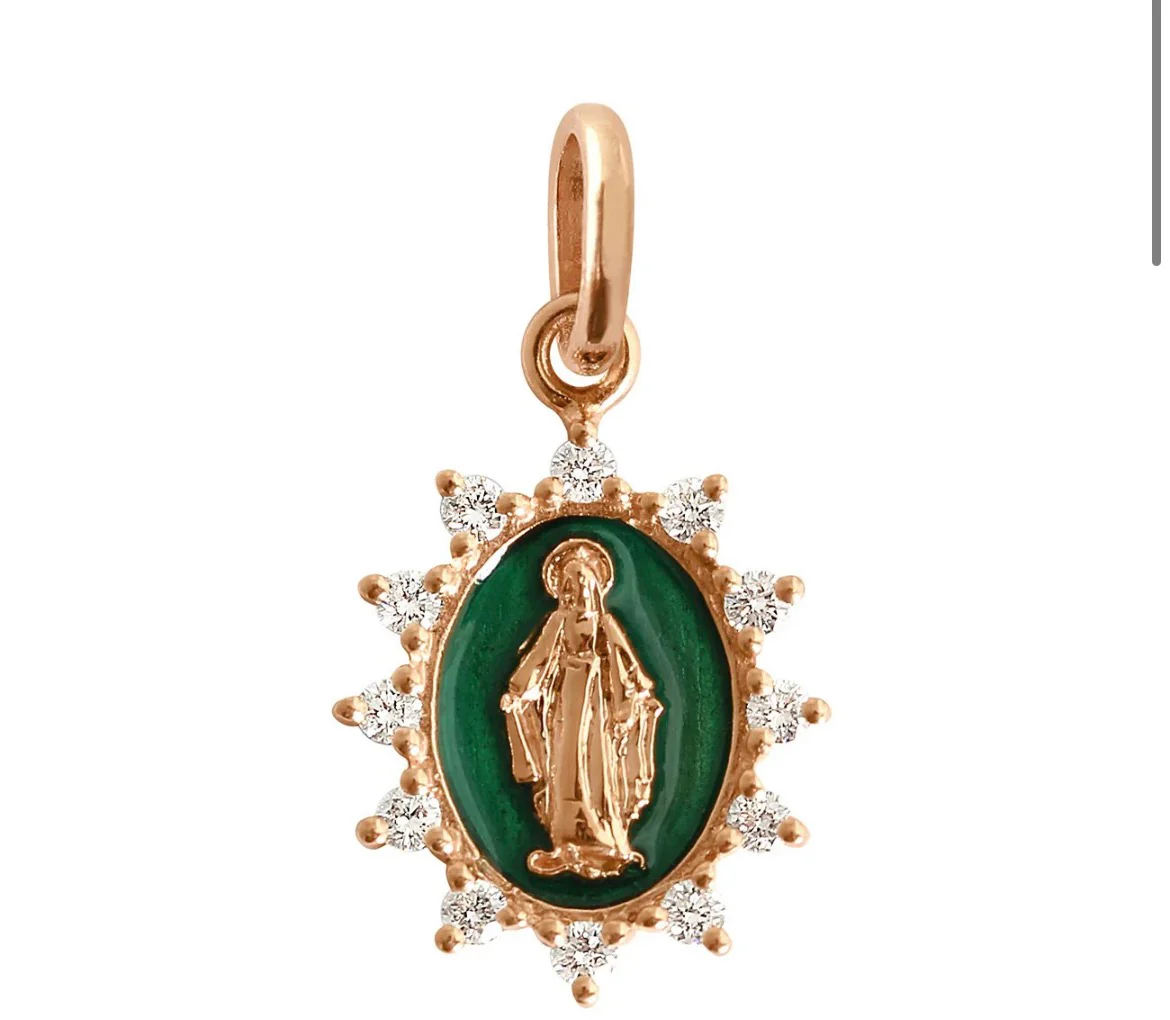 Pendentif résine petite madone suprême gigi CLOZEAU or 18 carats, 12 diamants
