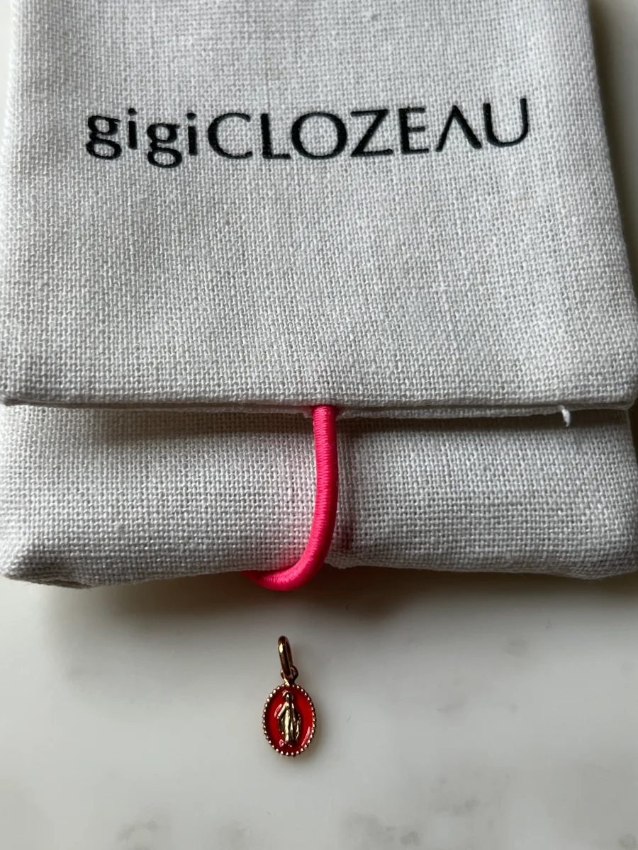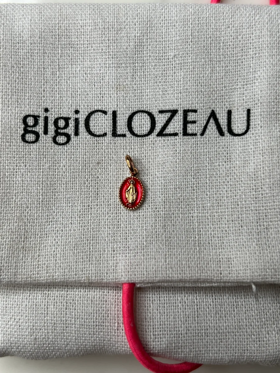 Jamais porté Marque : Gigi clozeau Modèle : Madone résine corail Or rose composition: or 18 carats (750 millièmes) et résine info taille: 0,8 cm (avec bélière 1,5 cm), pendentif vendu sans chaîne Prix d’achat Neuf: 220€
