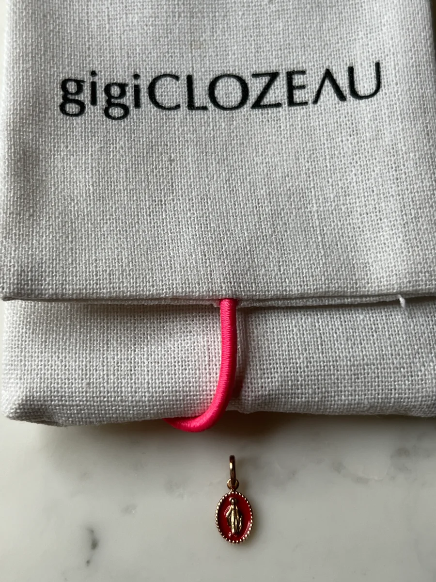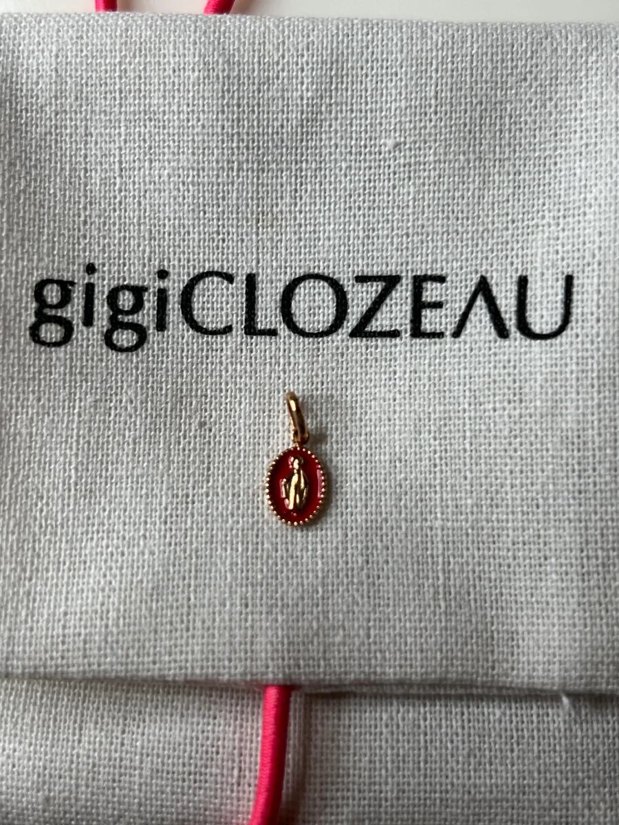 Jamais porté Marque : Gigi clozeau Modèle : Madone résine rose candy Or rose composition: or 18 carats (750 millièmes) et résine info taille: 0,8 cm (avec bélière 1,5 cm), pendentif vendu sans chaîne Prix d’achat Neuf: 220€