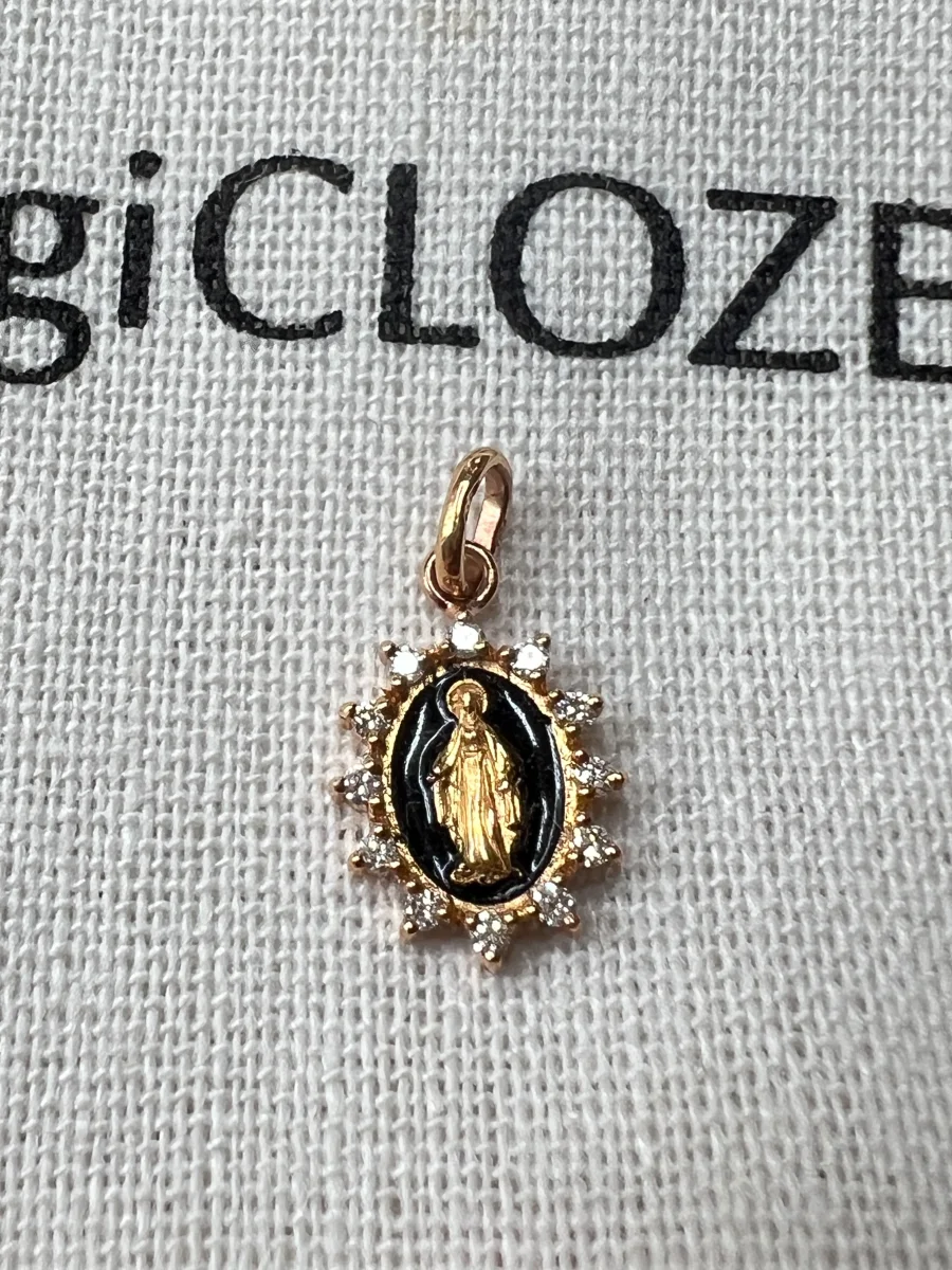 Pendentif résine petite madone suprême gigi CLOZEAU or 18 carats, 12 diamants